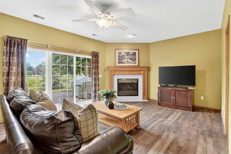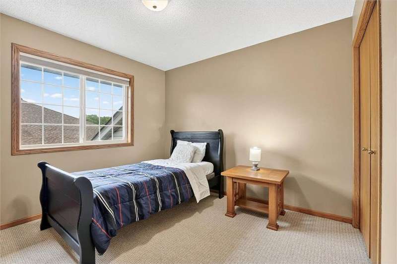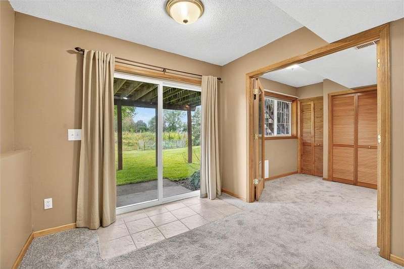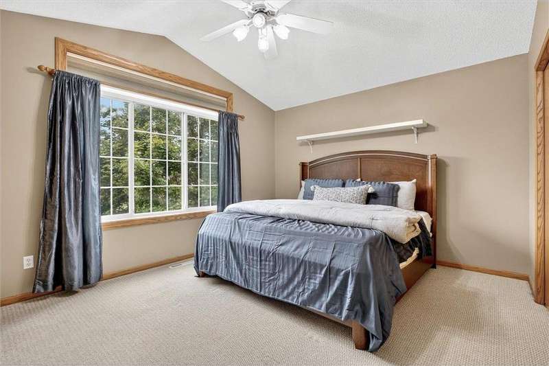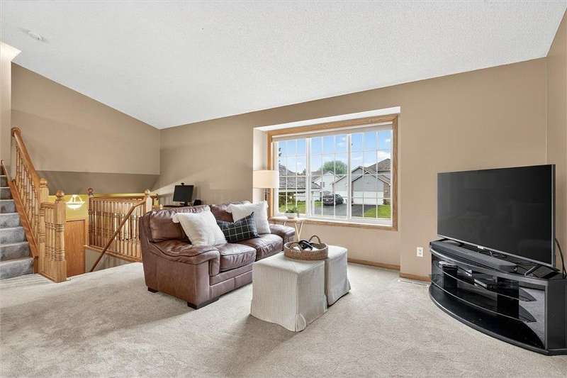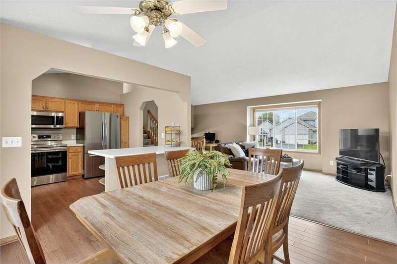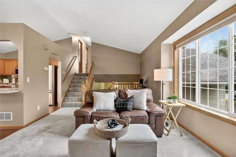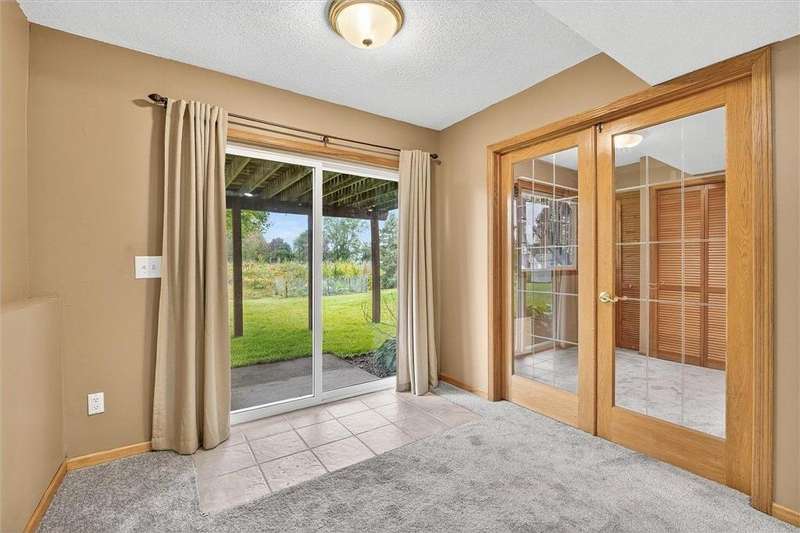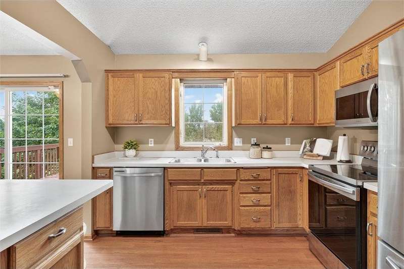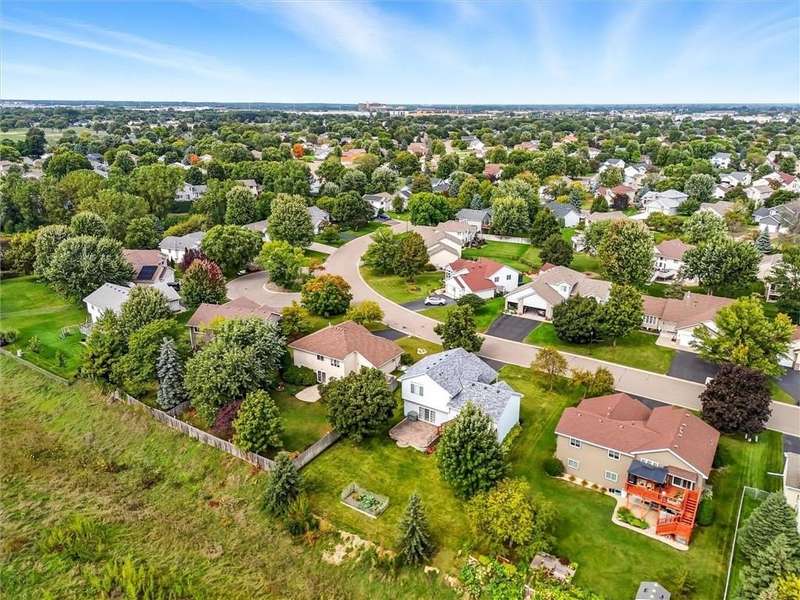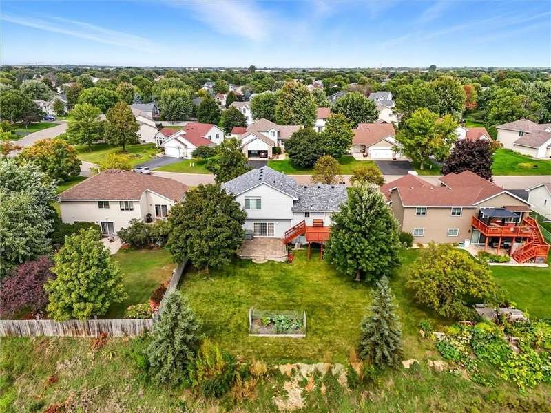Spacious walkout four level with a rare private backyard with no homes behind. Enjoy BBQs w/family/friends on your own private deck and patio with South exposure for lots of sunlight. Large level backyard w/plenty of space for kids and pets to roam. Updated Samsung stainless steel appliances, carpet, flooring, light fixtures and paint in most rooms. Upper level features 3 Bdrms on upper level with 3/4 Prim Bathroom and Full Bathroom. Spacious vaulted upper level Kitchen, Living Room and Dining Room with slider to deck. Main level walkout Family Room w/gas fireplace, Laundry Room and convenient half Bathroom. Lower level 4th Bedroom, storage room and large Flex Room w/French doors walking out to private backyard. Finished 3 car garage w/plenty of storage. Nicely landscaped and new vinyl siding and roof in 2017. Quiet neighborhood with-in walking distance of Zane Sports Park/Fields and shopping (HyVee). Easy access to Hwy 610 and dwtn Mpls.