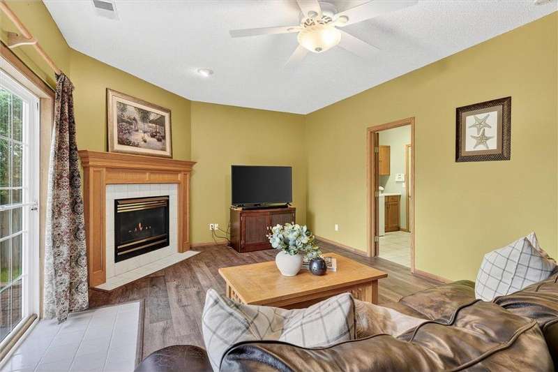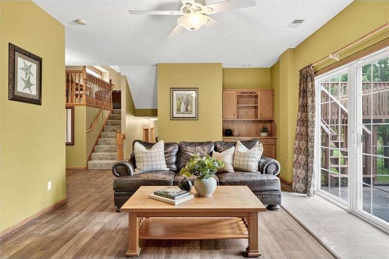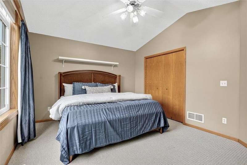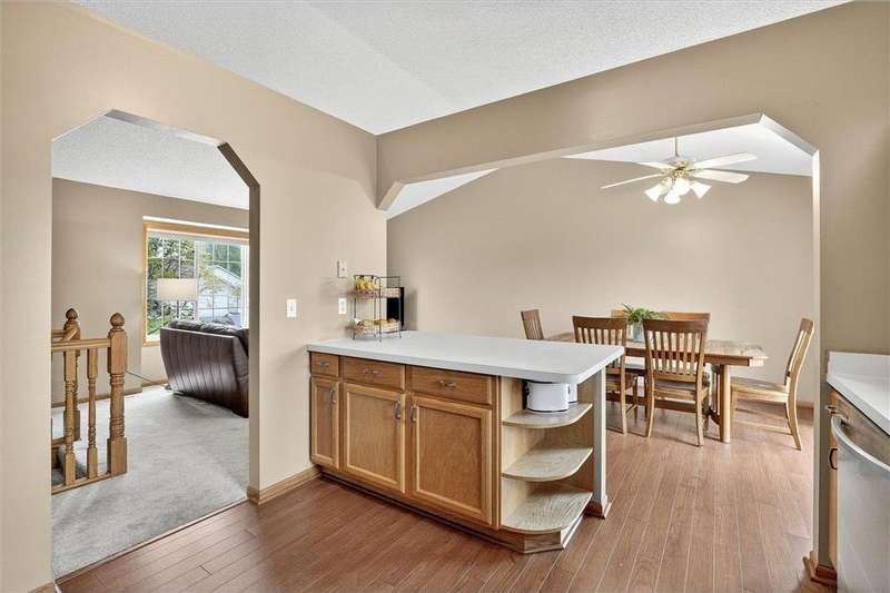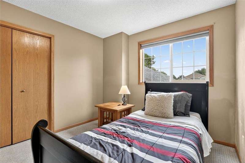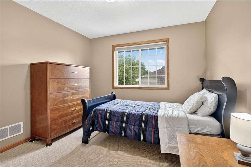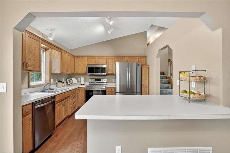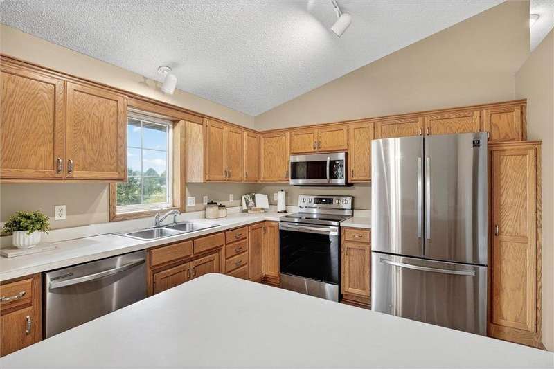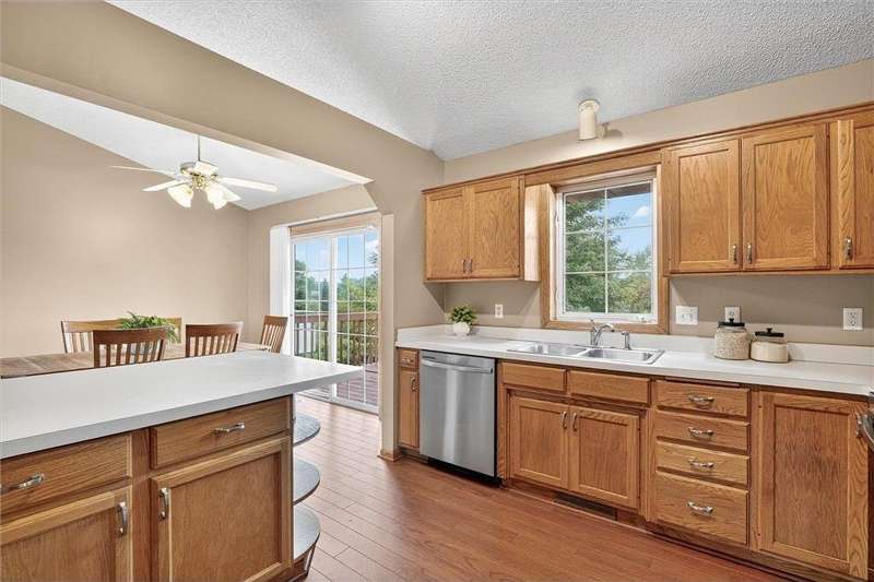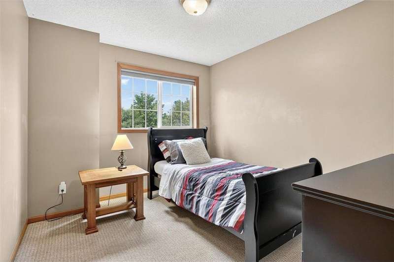 Spacious walkout four level with a rare private backyard with no homes behind. Enjoy BBQs w/family/friends on your own private deck and patio with South exposure for lots of sunlight. Large level backyard w/plenty of space for kids and pets to roam. Updated Samsung stainless steel appliances, carpet, flooring, light fixtures and paint in most rooms. Upper level features 3 Bdrms on upper level with 3/4 Prim Bathroom and Full Bathroom. Spacious vaulted upper level Kitchen, Living Room and Dining Room with slider to deck. Main level walkout Family Room w/gas fireplace, Laundry Room and convenient half Bathroom. Lower level 4th Bedroom, storage room and large Flex Room w/French doors walking out to private backyard. Finished 3 car garage w/plenty of storage. Nicely landscaped and new vinyl siding and roof in 2017. Quiet neighborhood with-in walking distance of Zane Sports Park/Fields and shopping (HyVee). Easy access to Hwy 610 and dwtn Mpls.