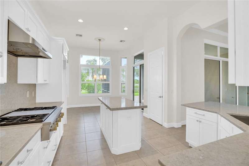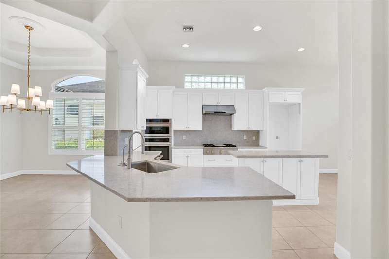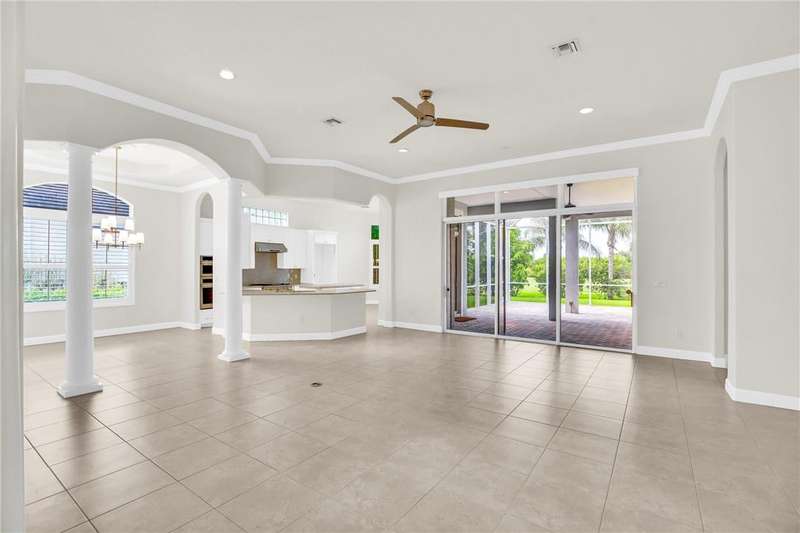 Beautifully updated estate home situated alongside Pointe West's golf course. This home features a large covered/screened paver lanai perfect for enjoying coffee in the morning & watching the golfers cruise by. The roomy home has high volume ceilings, dramatic archways, pillars & tray ceilings. Eat-in island kitchen w/granite countertops, backsplash, Sub-Zero Fridge, stainless steel appliances & natural gas cooktop. Grand primary suite with siitting area, his & hers walk-in closets, dual vanities, relaxing tub. Home features natural gas washer & dryer. Rmszapprox. EASY TO SHOW!