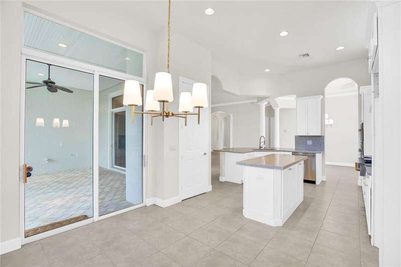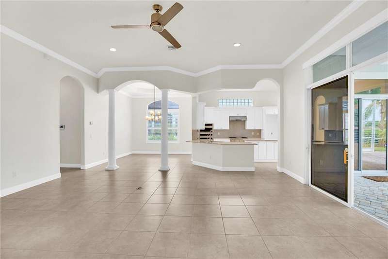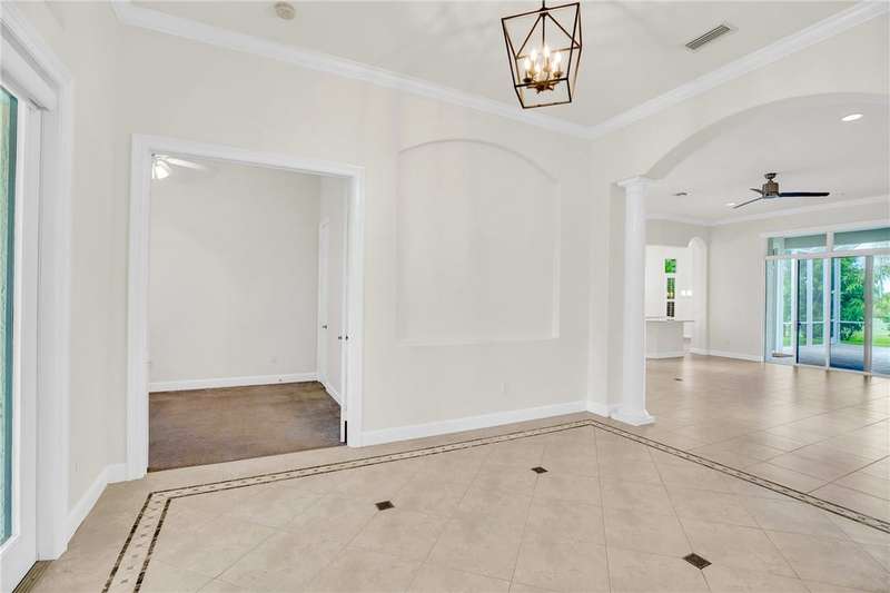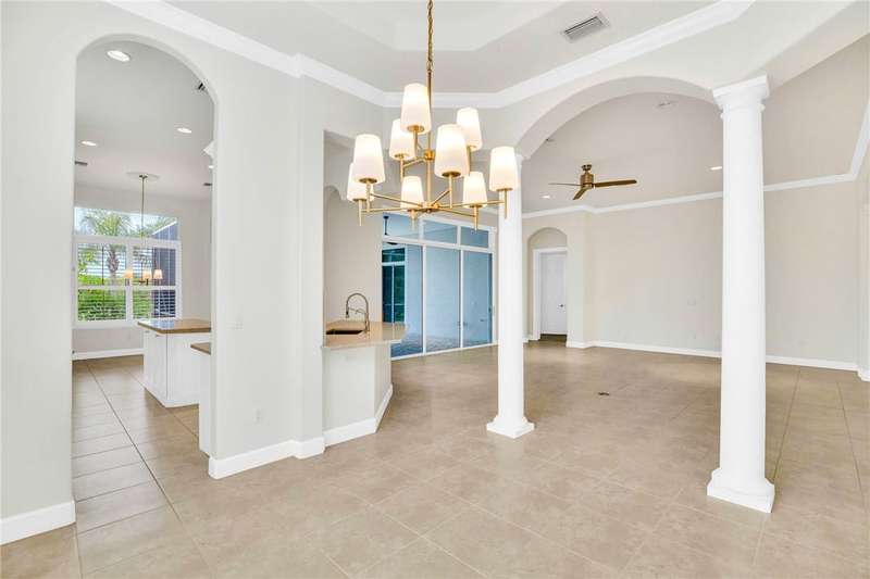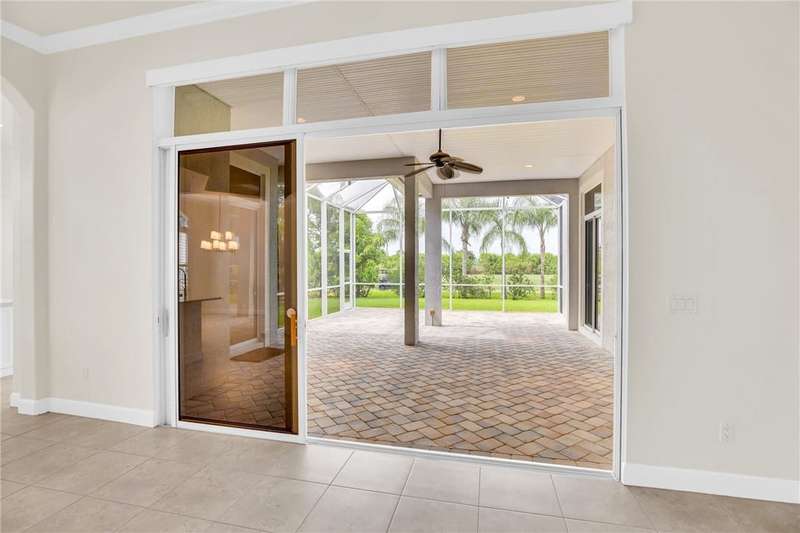 Beautifully updated estate home situated alongside Pointe West's golf course. This home features a large covered/screened paver lanai perfect for enjoying coffee in the morning & watching the golfers cruise by. The roomy home has high volume ceilings, dramatic archways, pillars & tray ceilings. Eat-in island kitchen w/granite countertops, backsplash, stainless steel appliances & natural gas cooktop. Grand primary suite with siitting area, his & hers walk-in closets, dual vanities, relaxing tub. Home features natural gas washer & dryer. Rmszapprox. EASY TO SHOW!