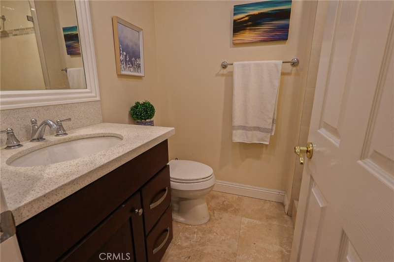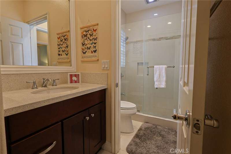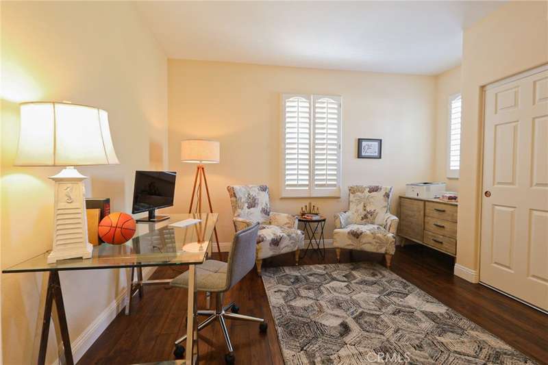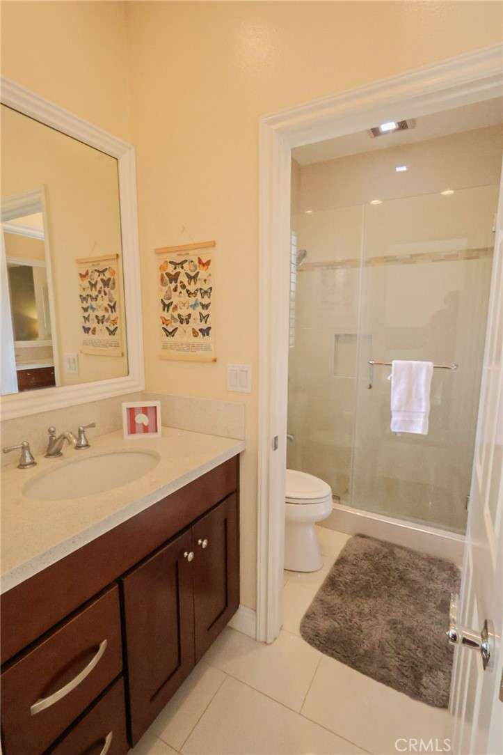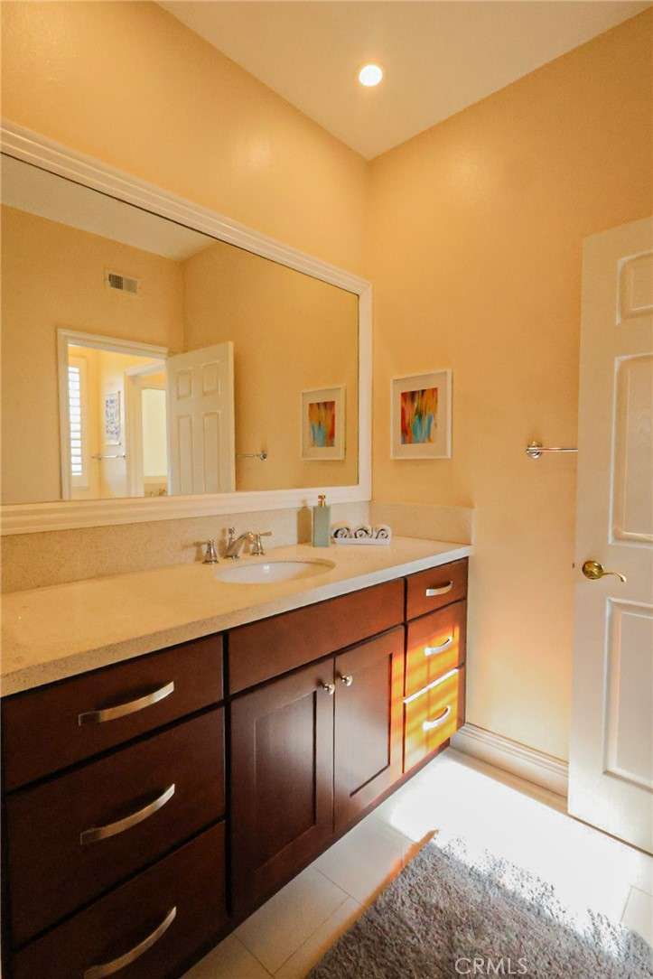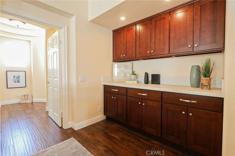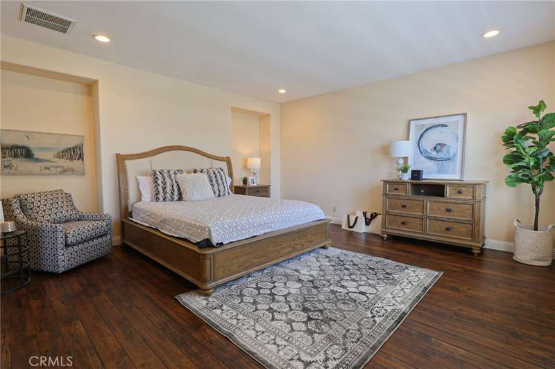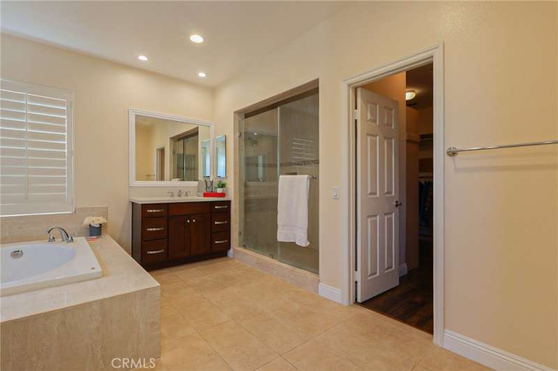 This meticulously designed 5-bedroom, 4-bathroom home offers an exceptional blend of luxury and function. Upon entry, you are greeted by 20-foot ceilings and polished travertine flooring that flows throughout the main level. The floor plan includes formal living and dining rooms, a dual-sided fireplace, and a desirable downstairs bedroom with a full bathroom. The gourmet kitchen is appointed with granite countertops, a massive center island, and a butler's pantry, opening to a spacious family room. A circular stairway leads to the second level, which hosts three full bathrooms and four additional bedrooms, including the expansive master suite. This private retreat features a large walk-in closet, a separate tub and shower with dual sinks, and a private balcony with a gorgeous view. The property is complete with a built-in backyard BBQ, a putting surface for recreation, and a 3-car tandem garage for ample parking and storage.