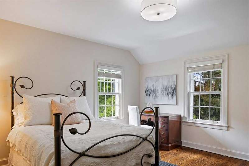 Gracefully tucked away on 1.55 acres of lush manicured grounds, 62 Woodley Road is a true Southern-inspired masterpiece reimagined for today's living. From the moment you approach the iconic black lacquered screen door with its Chippendale detail, you're drawn into a world of classic sophistication. Step inside to a grand foyer entrance where timeless black and white checkered marble floors meet a dramatic double atrium staircase wrapped in elegant wrought iron setting the tone for the architectural beauty that unfolds throughout. Gracious comfort exudes throughout this 13 room estate with that desirable southern exposure that allows natural sunlight to flood through the endless windows outlining the incredible backyard. Step down to a beautiful formal living room with a stone Parisian FP & custom French doors that open up to the cozy sunroom with picturesque windows overlooking the backyard. Finely appointed dining room with Visual Comfort light fixture layered with de Gournay wallpaper, antique marble fireplace and another set of French doors open out to the bluestone patio and deep backyard. Finely crafted white Chef's kitchen by O'Brien Harris with Villa Blanca marble, Clark & Barlow hardware, antique mirrored backslash and Holly Hunt pendents. Seamless transition to family rm ideal for cooking and entertaining at the same time. Command center mudroom, 2 powder rooms, and brand new laundry room also on this level. Two staircases lead the way up to large 2nd floor with intimate "Ralph Lauren" inspired den richly finished in restored paneled chestnut walls & handsome built ins w/ dark marble FP. Large primary suite with room for even more expansion over porch is completed with Ann Sacks white bath and gracious marble FP with custom built ins accented by built in window bench. 3 additional bedrooms with one being a large family bedroom w/ en-suite bath. The other 2 beds share pretty all white redone bathroom. Up to the oversized fully finished 3rd floor with 2nd family room and 2 beds ideal for in-law quarters or nanny. Lower level with mechanicals and ample storage space. The vibe of this home is effortlessly inviting-warm, layered, and livable across all 3 finished levels, seamlessly blending indoor & outdoor living. And with ample space to add a pool, the vision of true Southern comfort could be fully realized, elevating this already timeless retreat into a personal resort unlike any other.