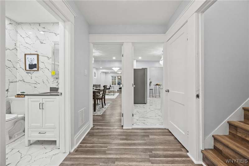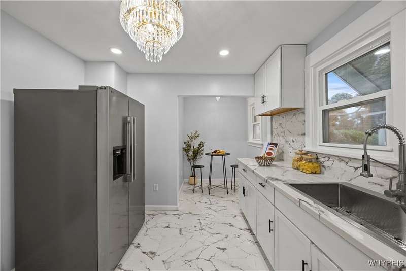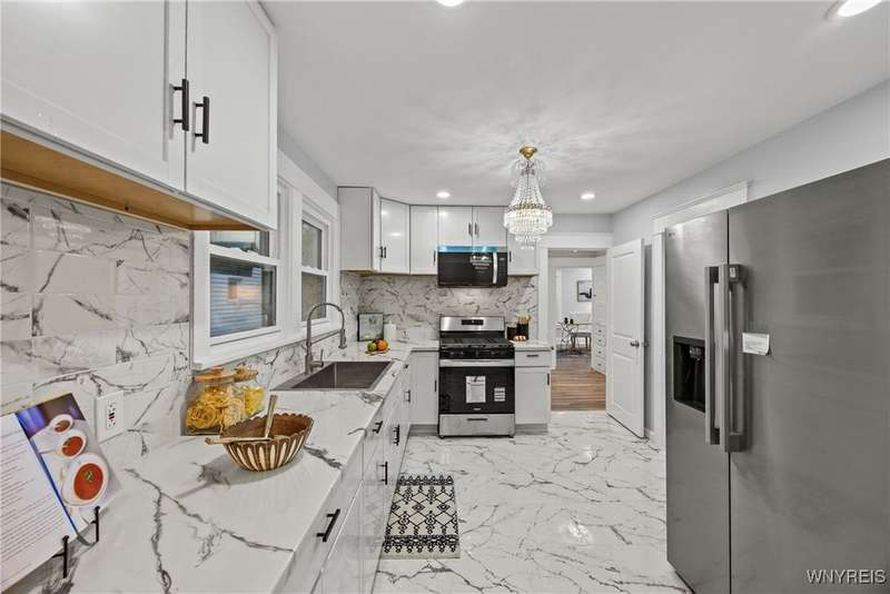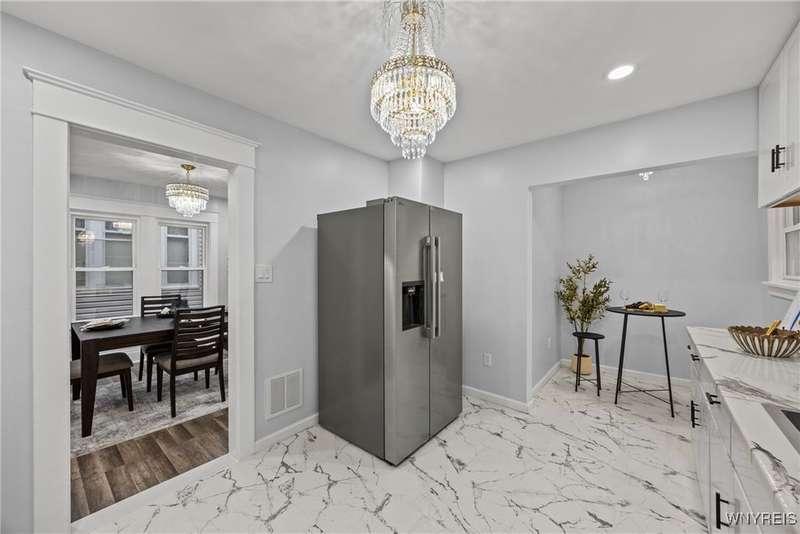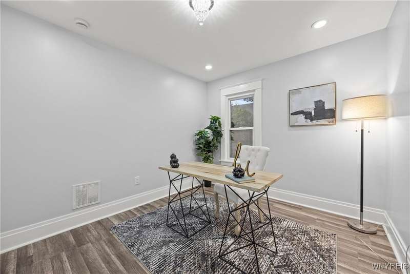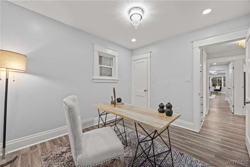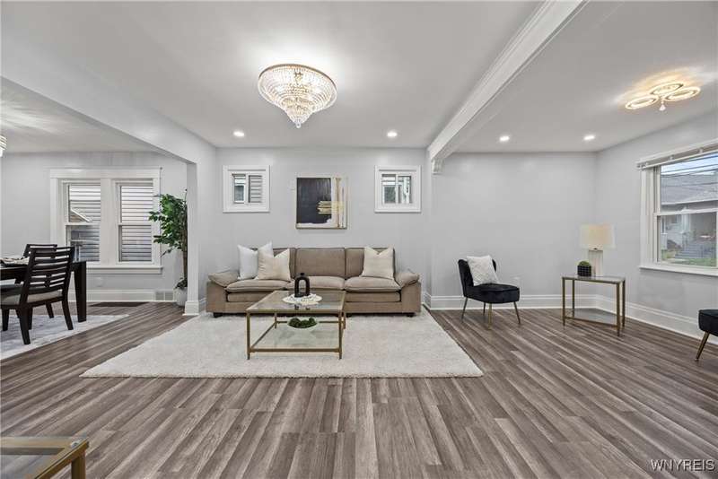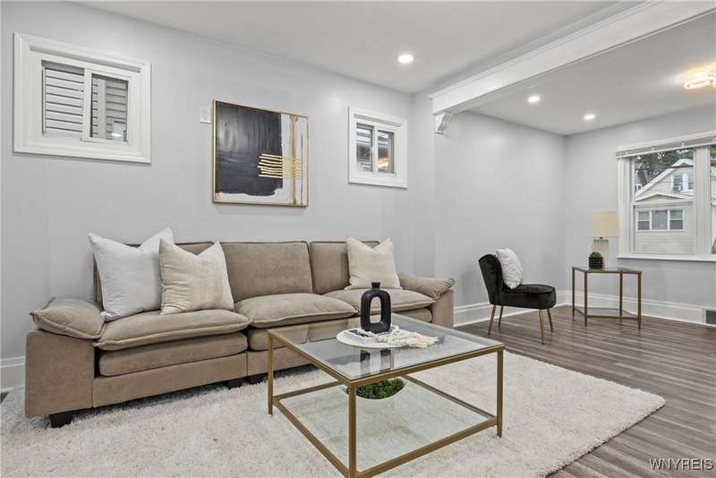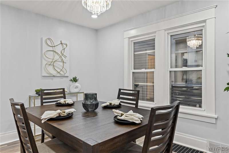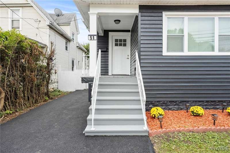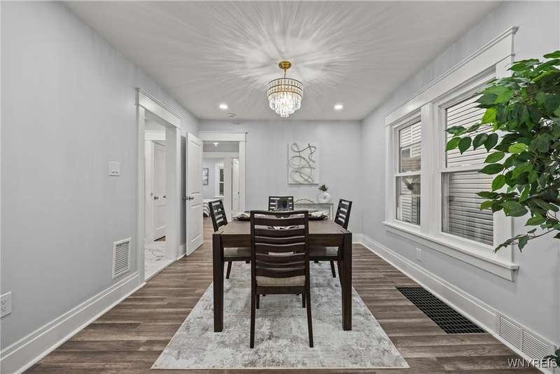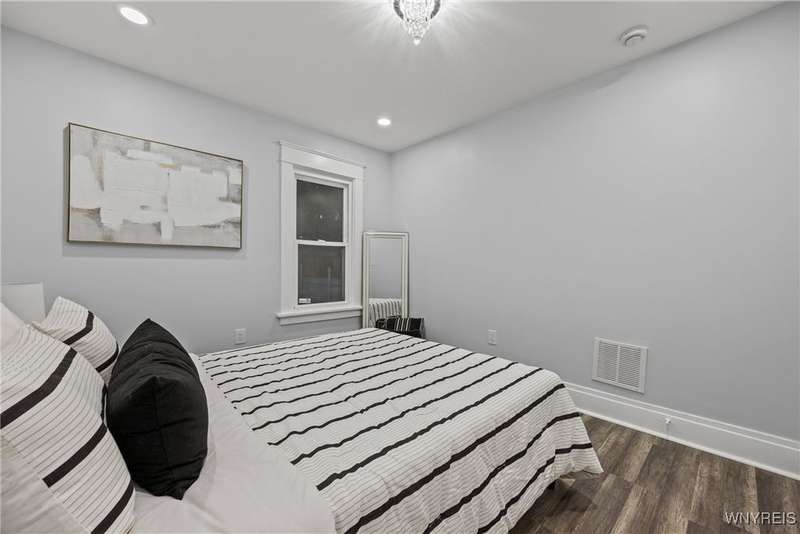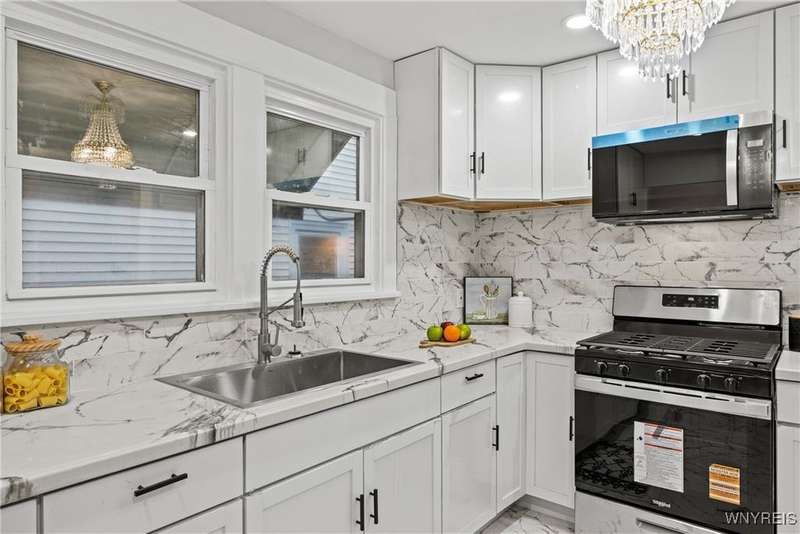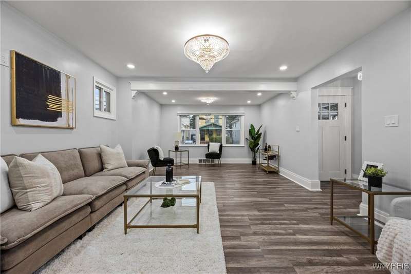 Charming brick street leads to this well kept 4 bedroom home. Original character enhanced by arched doorways. Cozy breakfast nook off kitchen will be a bright spot to enjoy morning coffee. Convenient to bus line, walking distance from ECMC Hospital and other Buffalo area amenities. Welcome to this beautifully updated single family featuring 4 bedrooms and 2 full baths. This property has been renovated with brand-new flooring, fresh drywall, and a full tear-off roof. enjoy peace of mind with all new plumbing, water line, and a full electric upgrade. The modern kitchen and bathrooms have been tastefully updated with contemporary finishes. Additional highlights include new lighting fixtures, most of the windows are updated, a freshly paved driveway, brand new basement block windows, furnace 2024, hot water tank 2025 and a new porch perfect for relaxing. Move-in ready and designed for today's lifestyle! Square Footage measured by Cubicasa app, is not same as the previous county record due to the substantial remodeling. See professional prepared floor-plan included with the property's photographs. Offers will be reviewed as they are received.