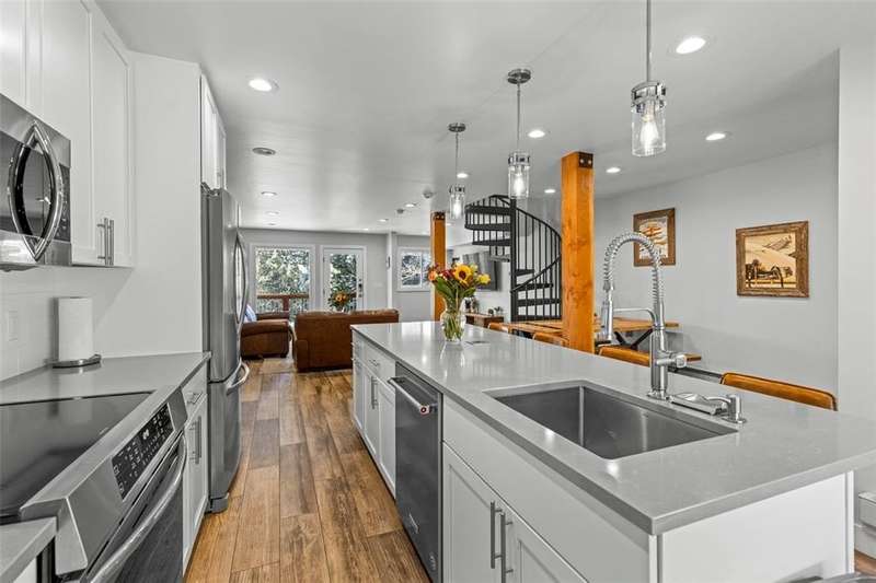 Stunning Mountain Contemporary Townhouse with Ski Area Views Experience the perfect blend of modern luxury and mountain charm in this spacious 1,344 SF townhouse, beautifully renovated with a $230K mountain contemporary makeover. Featuring 2 bedrooms, a loft bedroom, and a bunk room that sleeps 4, this home is designed for comfort and style. Sleeps 10. Take in the serene forest views and the tranquility of nature right from the large deck on the rear exterior of the townhome. Enjoy breathtaking ski area and mountain views from your living space, while upgrades—including a new roof, gutters with heat tape, 50-gallon water heater, and upgraded siding—ensure lasting quality and efficiency. No transfer tax, low HOA fees. Conveniently located just steps from the free bus to the ski area, this home offers effortless access to world-class skiing, dining, and shopping. Whether you're looking for a full-time residence, a vacation getaway, or an investment property, this turn-key retreat is ready for you!
