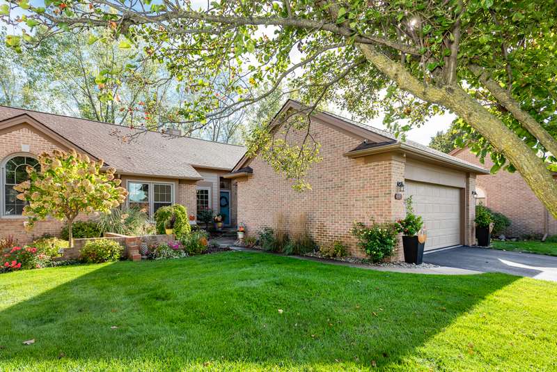 Beautifully updated ranch condo in the sought-after Stonebridge Golf Course Community, ideally situated on a quiet cul-de-sac backing to mature trees and the 7th fairway. This move-in-ready home showcases high-end finishes and a warm, inviting design throughout. The main floor features a spacious primary suite with a cathedral ceiling, walk-in closet, and a stunningly updated en-suite bath with quartz counters and a glass-door shower. The second bedroom is adjacent to another fully updated bath, perfect for guests. Hardwood floors flow throughout the first level, leading to an updated kitchen with white cabinetry, quartz countertops, stainless steel appliances, and abundant storage. The open dining and living area offers a cozy wood-burning fireplace and a doorwall to the Three-Season Sunroom, complete with a knotty pine ceiling and access to the new Trex deck-ideal for relaxing and enjoying serene views. The finished lower level expands the living space with a family . . . room, bedroom with egress window, full bath, workout room, and ample storage. The majority of the windows & doorwall have been replaced. Truly a showplace with HGTV-worthy updates throughout! Prime location close to downtown Ann Arbor, U-M campus and hospitals, Costco, restaurants, and shopping. Experience the best of golf course living in one of Ann Arbor's most desirable communities.