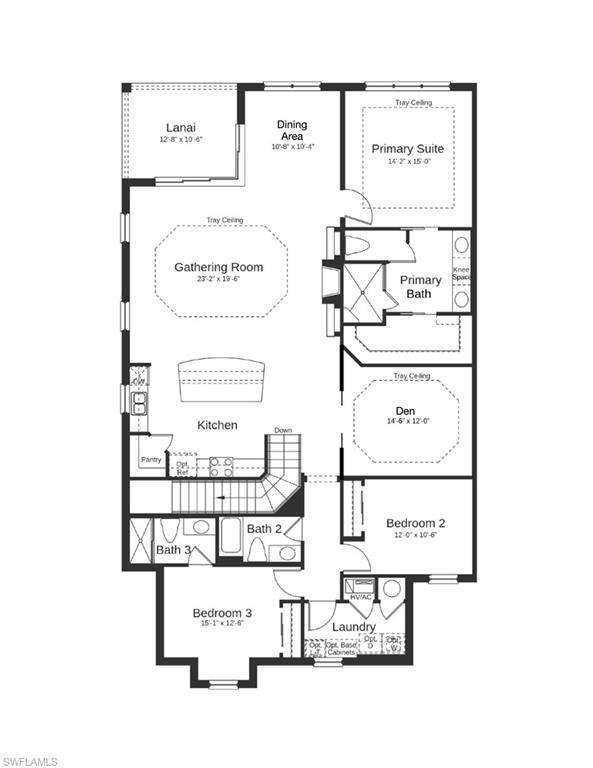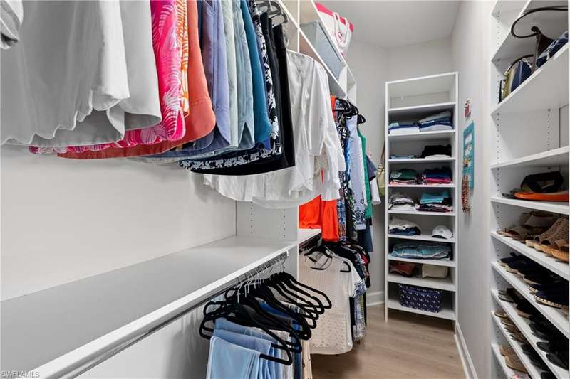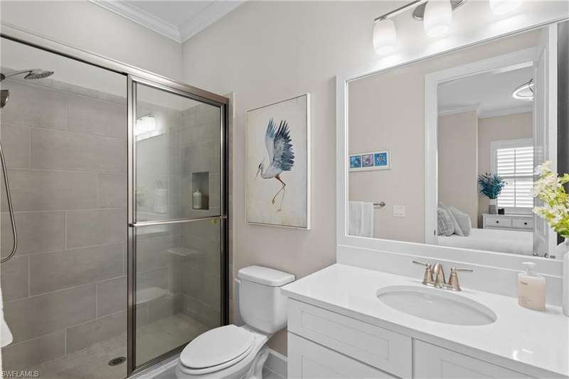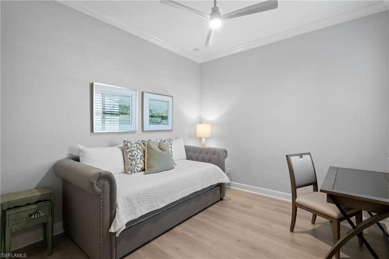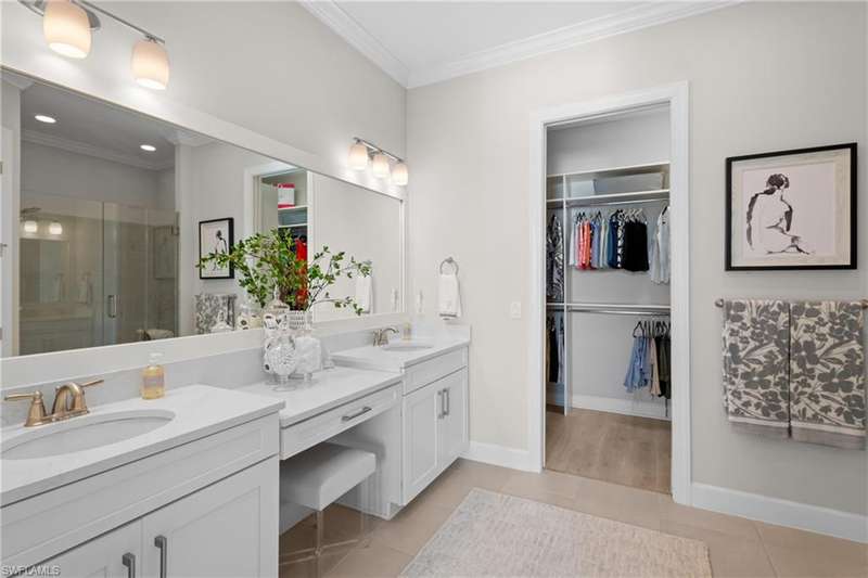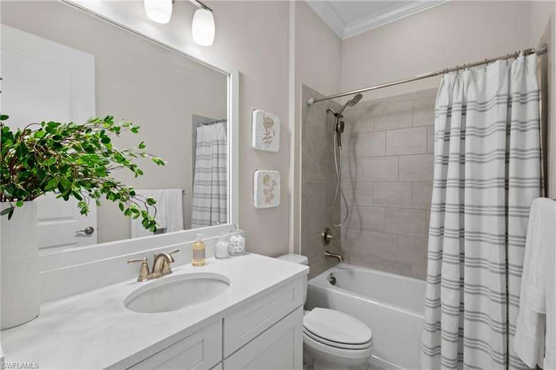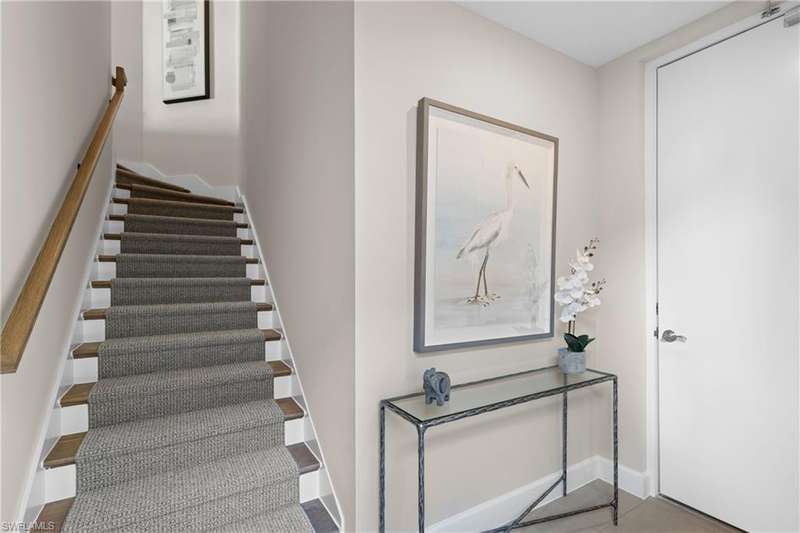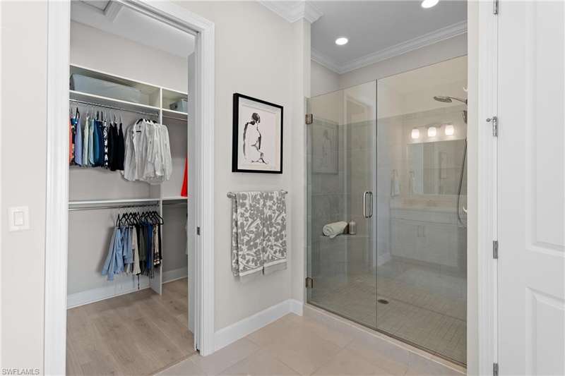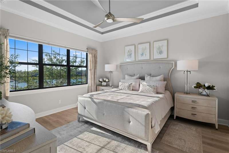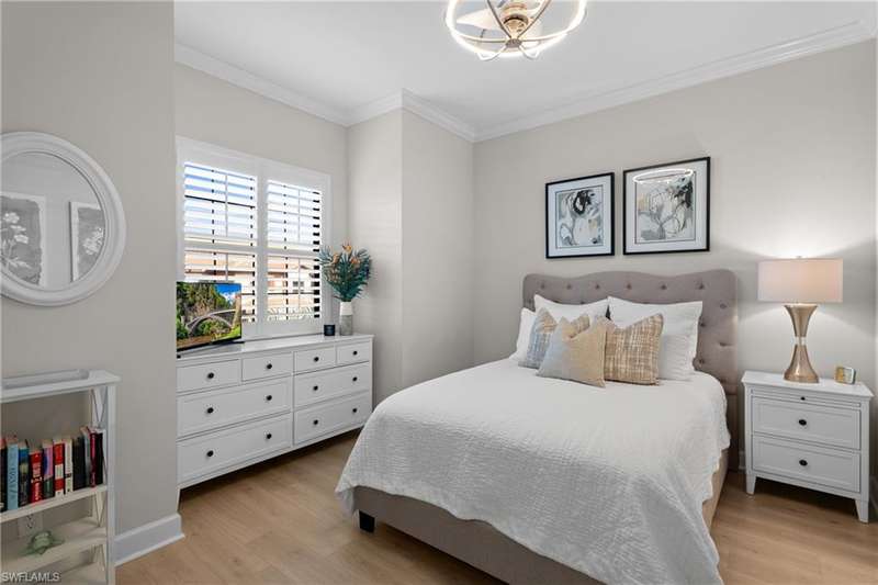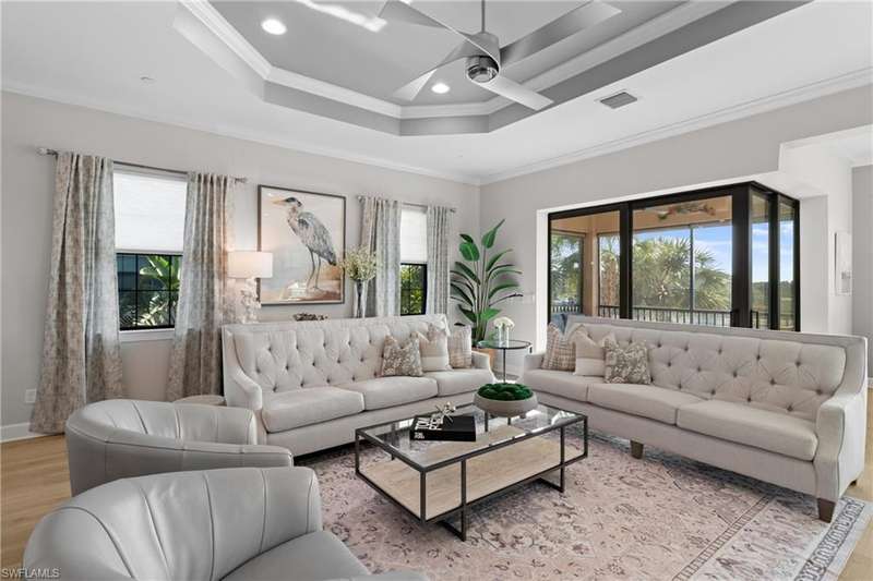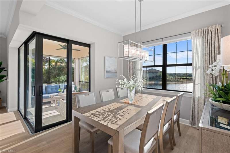 Live a Vacation Lifestyle in Esplanade When Only the Best Will Do! Step into luxury with this highly upgraded Romano floorplan second-floor end unit coach home, located in the prestigious Esplanade Golf & Country Club. Offering 3 bedrooms plus an enclosed den and 3 full baths, this spacious condo spans 2,393 square feet under air and lives like a single-family home. The open-concept design features a generously sized great room with south and west-facing windows, flooding the space with natural light. The kitchen is a chef s dream, showcasing quartz countertops, ample cabinetry, under-cabinet lighting, and stainless steel appliances. Enjoy stunning sunsets from the west-facing corner lanai, offering panoramic views of the lake, golf course, and a picturesque bridge. The master suite is a true retreat, with three windows overlooking the serene views, and a luxurious bath featuring dual sinks, a large walk-in shower with a frameless glass enclosure, and a custom-built shelving unit