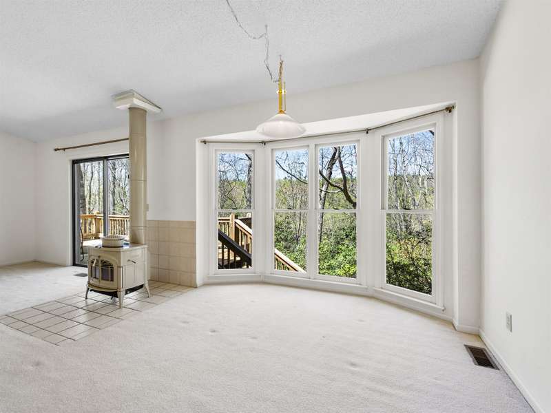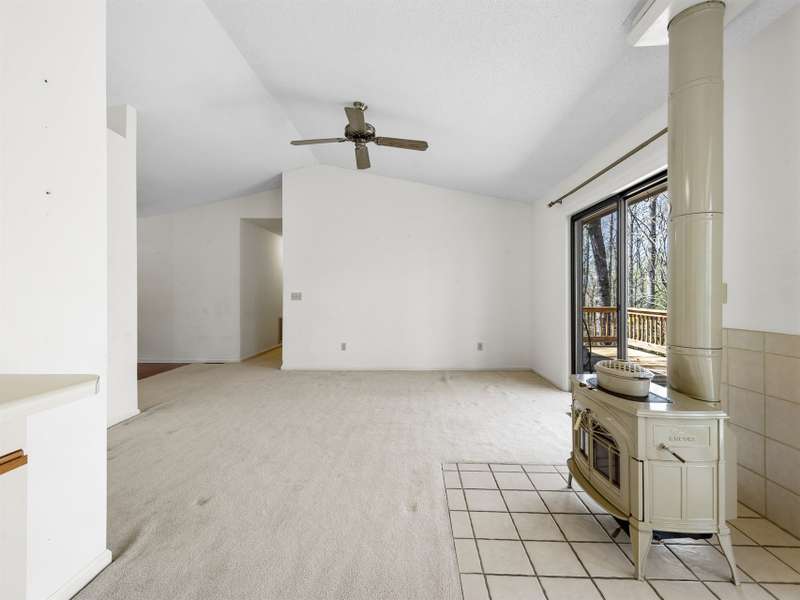 One-Level Brick Rancher with Vaulted Ceilings and set on a spacious, private lot, this charming 3-bedroom, 2-bath brick ranch offers comfort, character, and key updates?including a NEW ROOF, NEW TWO CAR GARAGE DOOR and a never-been-used WOOD STOVE! The inviting open floor plan is enhanced by vaulted ceilings in the main living areas, creating an airy, more contemporary and welcoming atmosphere. At the heart of the home, the wood stove separates the living and dining rooms, providing cozy warmth capable of heating the entire house. The sun-drenched dining room features floor-to-ceiling windows, while sliding glass doors in the living room lead to a large deck?perfect for grilling, entertaining, or simply enjoying the peaceful setting. Additional highlights include a full two-car garage and plenty of potential for personalization. With a cosmetic updates, this home becomes a rare gem in this price range. Don't miss your chance to make it yours?schedule your showing today!