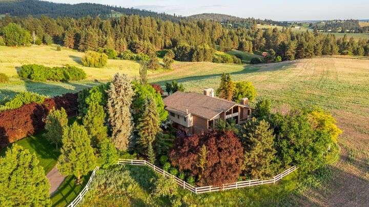 Architectural Gem on the Palouse. Tan/Kundig Architects. Max Dobler Contractor. Superior Quality of Construction. Massive Palouse Views. Enchanting Landscaping—Aw the Trees. An Arborist’s Delight…And the Land Is Farmed and Useful. Level, W/ Draws (Sledding Parties!). AG Taxes. The House Is Warm but Big Rooms & Huge Windows Capturing the Views-Anderson Windows. Brings The Outside In…High Vaulted Ceilings & 4 Fireplaces & Gas Stove Including the Primary. Extensive Brick and Wood. 4 Bedrooms Up & 3 Bathrooms! Primary Is Spectacular—Private but Mesmerizing Views. 5 Minutes to Mullan Road School, Shopping, Restaurants. 15 Minutes Downtown, 18 Minutes to Airport. Moran Prairie, Chase, Ferris Schools—District 81. Well has 6,000 gallon holding tank