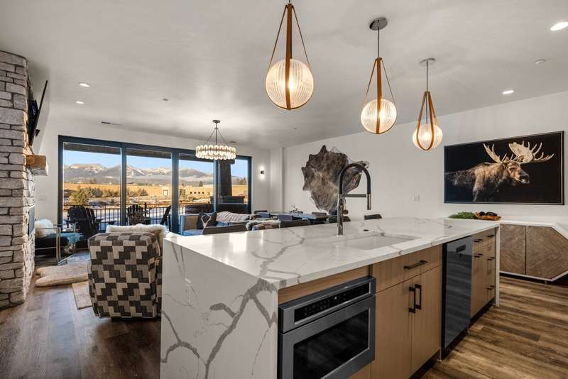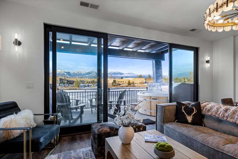 Eagle Lake Elegance! Located in the heart of town, this exquisite end-unit condo in the desirable Eagle Lake community offers a blend of luxury and convenience and comes furnished with all appliances. The open layout is thoughtfully designed to combine both comfort and style, featuring 3 bedrooms, 3 bathrooms, and 1,769 sq ft of high-end finishes. Perfect for hosting and entertaining, the unit includes two en-suite bedrooms and a spacious deck (with a private hot tub!) that captures stunning views of Whitefish Mountain Resort. The deck provides direct access to beautifully landscaped grounds, including fire pits, a walking path, waterfront docks, a play area, and a dog park. Zoned for nightly/weekly rentals, this property makes an ideal investment or mountain town retreat.