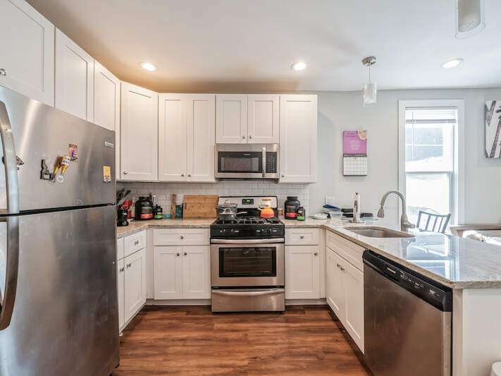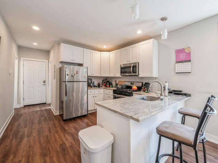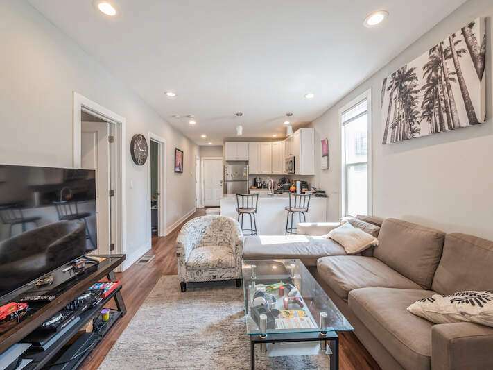 Welcome to 1305 W Barry - Available Now! Discover this bright and spacious 2-bedroom, 1-bath coach house apartment, tucked away on a quiet one-way street in the heart of Lakeview's Southport Corridor. Completely rebuilt from the studs up in 2017, this home offers a perfect blend of modern updates and classic Chicago charm. Enjoy a stylish kitchen with white cabinetry, quartz countertops, and stainless steel appliances, plus hardwood floors throughout, central air, and in-unit laundry for everyday convenience. Relax or entertain outdoors in the shared patio area, perfect for grilling and soaking up summer evenings. With shopping, dining, parks, and public transit just steps away, you'll love the accessibility and neighborhood vibe that make Lakeview one of Chicago's most desirable areas. Don't miss your chance to make this beautiful home yours - schedule your showing today!