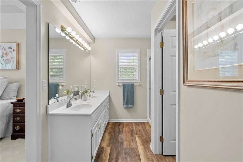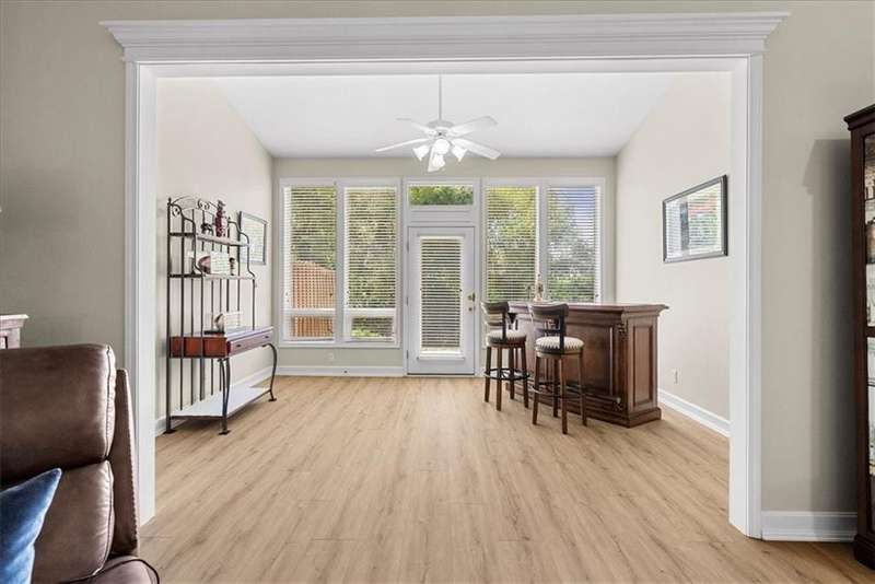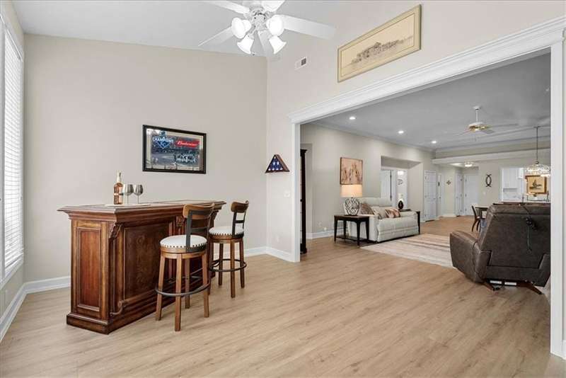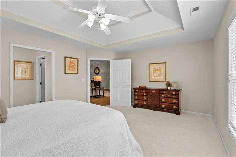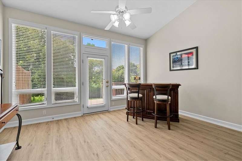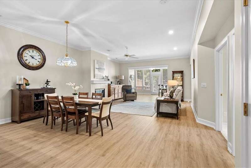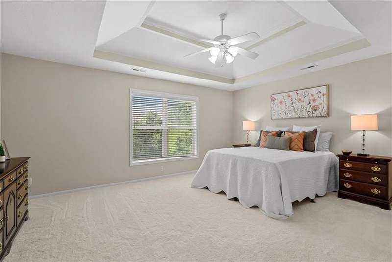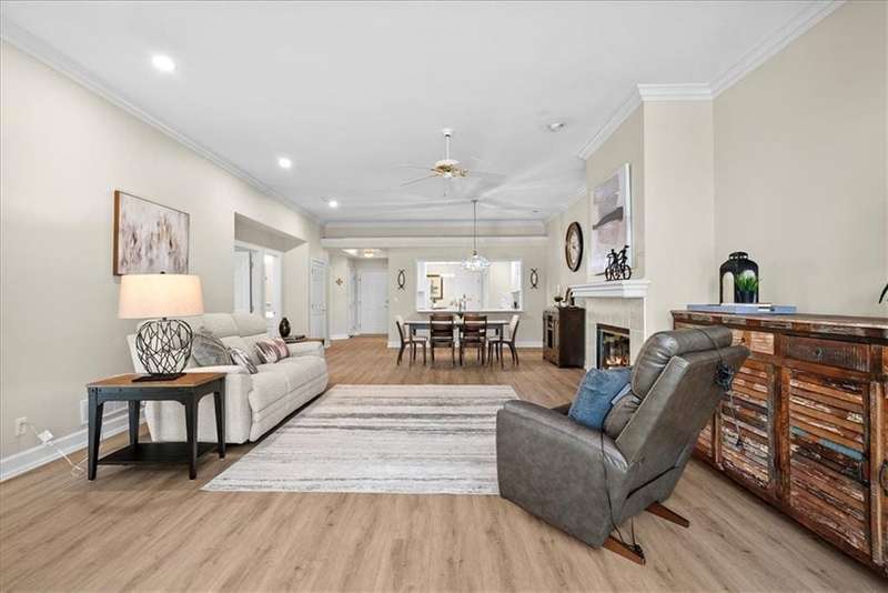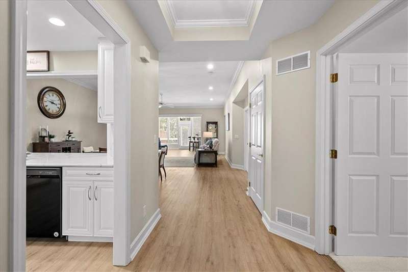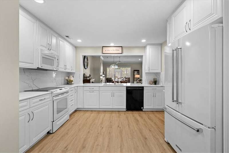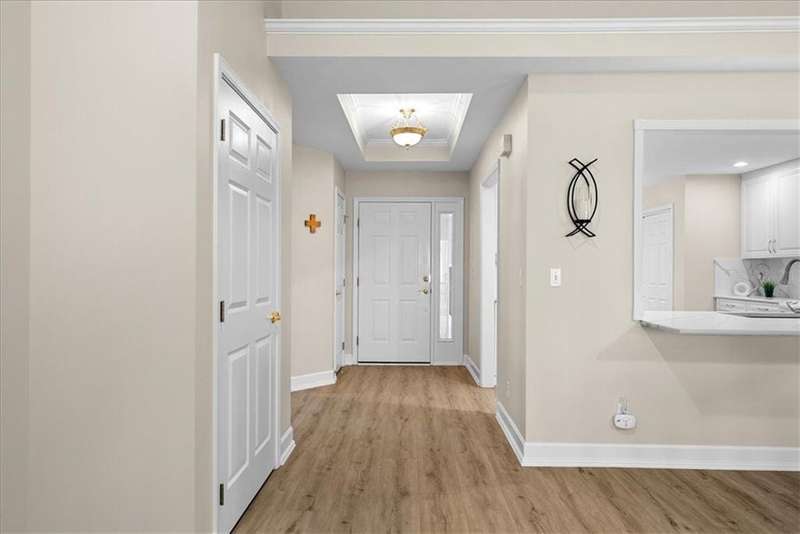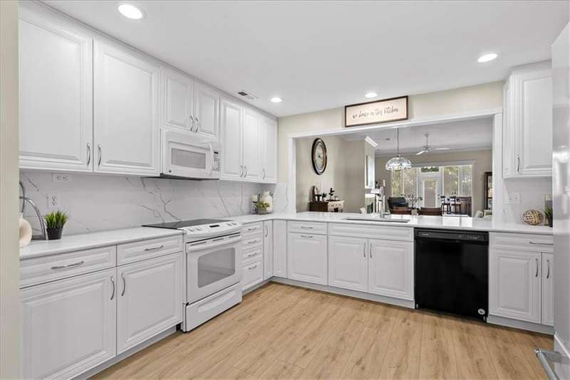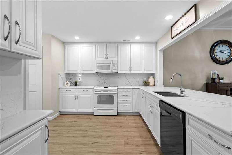 This beautifully renovated home, nestled against a serene green space, offers a blend of elegance and modern convenience. The kitchen boasts brand-new white cabinets with soft-close drawers, sleek quartz countertops and backsplash, and all-new hardware. Commercial-grade luxury vinyl flooring extends through the entry, kitchen, dining room, living room, and sunroom, while all bedrooms feature plush, high-end carpeting with extra-thick padding. New baseboards and fresh interior paint add a polished touch. The ten-foot ceilings in the living areas enhance the spaciousness of the open floor plan. In addition, there are no stairs to navigate, making this the ideal safe space youve been seeking. The current owners have upgraded to above-grade water supply lines for each fixture. Step outside to enjoy a private patio and a newly stained deck. Stratford Place, a delightful 50+ community, offers a recently renovated clubhouse for social gatherings and an indoor swimming pool.