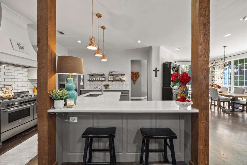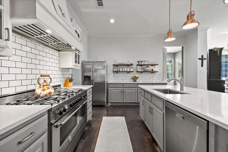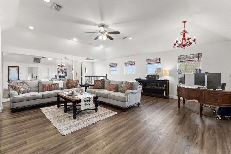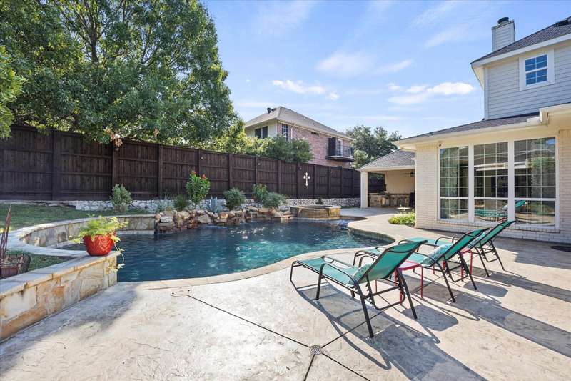 NO HOA! Tucked away on a quiet cul-de-sac near the shores of Lake Ray Hubbard, this stunning 5 bedroom, 6 bath located in The Pinnacle offers resort-style living and endless flexibility. The open-concept kitchen, dining, and living area features expansive windows that flood the space with natural light and capture tranquil backyard views and relaxation vibes! Downstairs, youll find primary bedroom, laundry room, built in workstation and three versatile flex roomsperfect for a home office, gym, craft room, or additional guest spacegiving you the freedom to tailor the home to your lifestyle. Upstairs, discover three spacious bedrooms, each with its own charm, plus a large game room or family room area with built in entertainment center that provides extra space for playing your favorite game, watching a movie or having fun. Lake views offer a view of downtown Dallas, from the upstairs family room. Step outside to your private backyard oasis, complete with a sparkling pool with cascading waterfall, spa, and outdoor living center with a cozy stone fireplaceideal for year-round entertaining. There is parking in alley behind the home. Located just minutes from major roadways, Downtown Rockwall, The Shores Golf Club, Lake Ray Hubbard, parks, shopping and dining, this home perfectly blends comfort, convenience, and versatility.