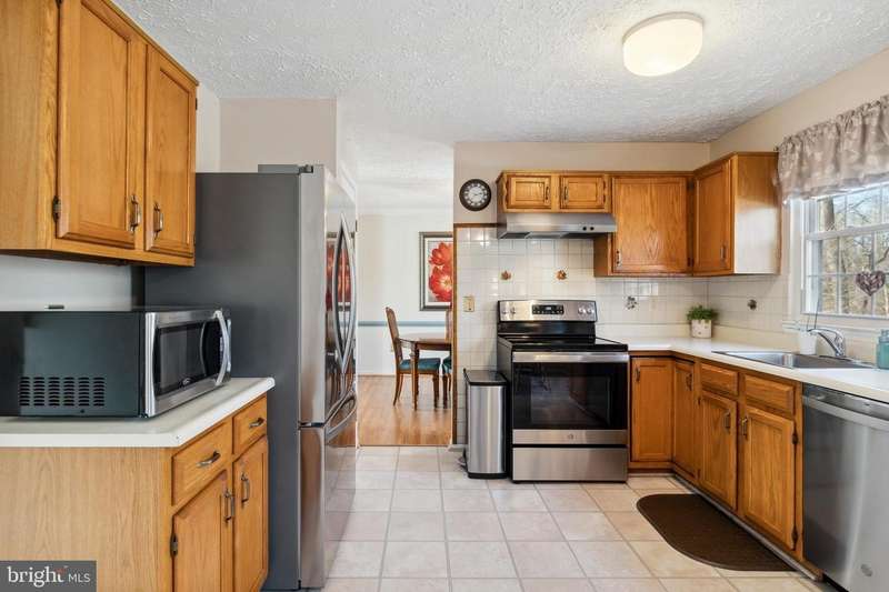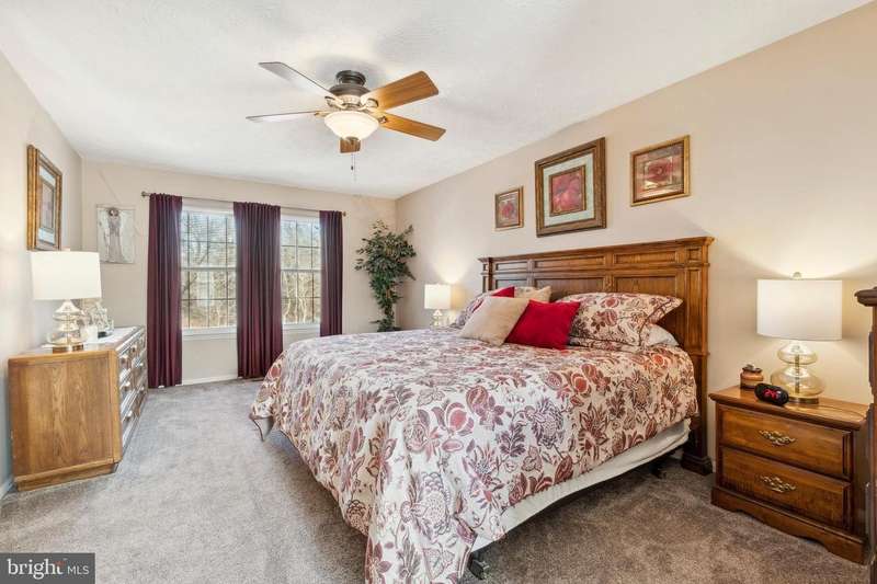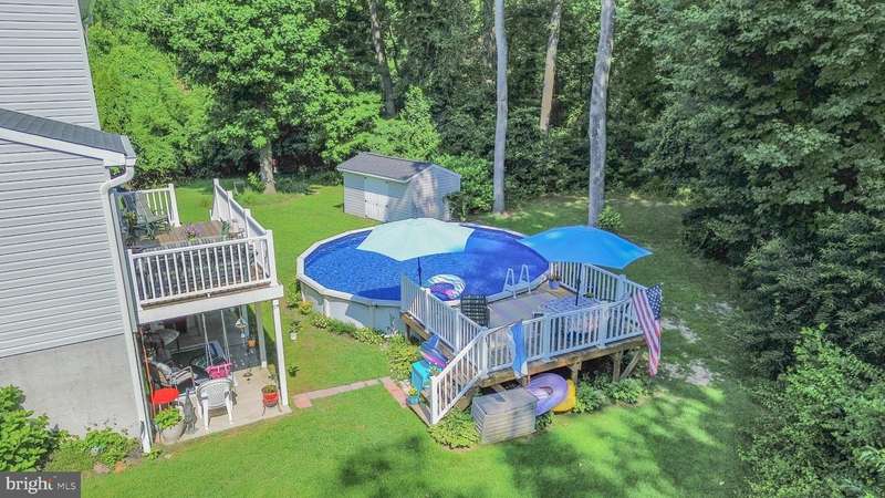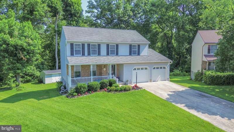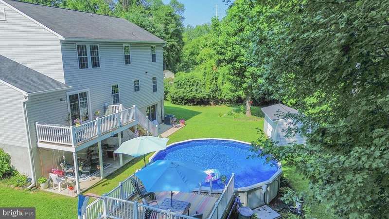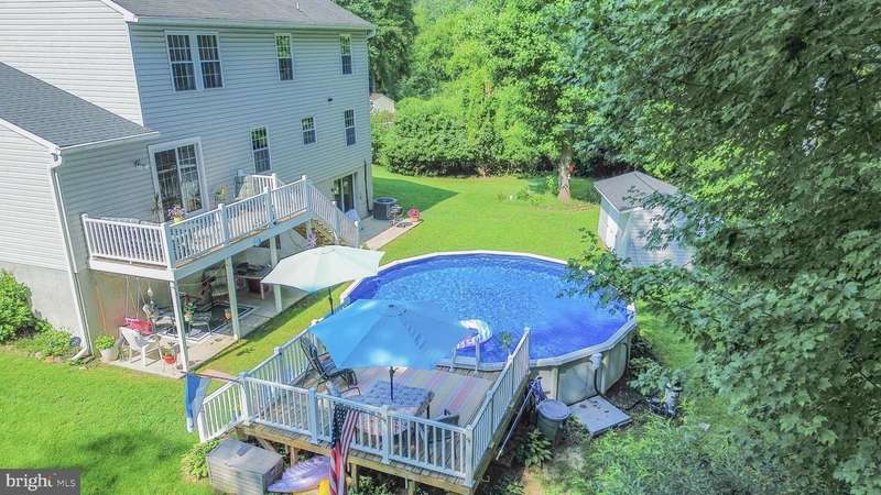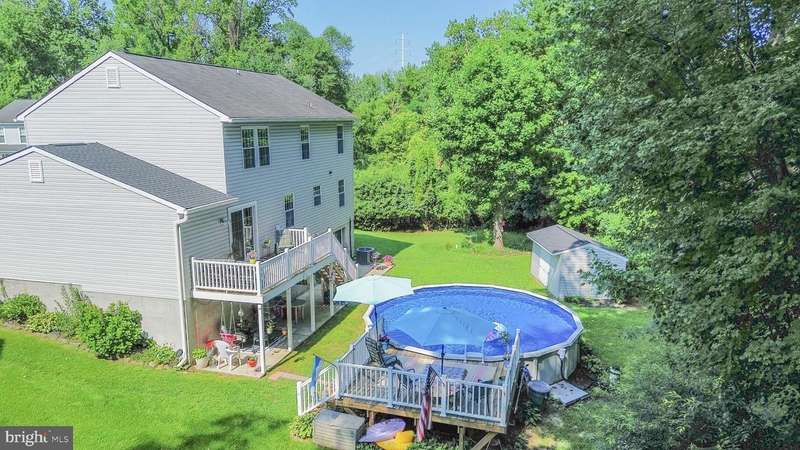 Nestled at the end of a quiet cul-de-sac and backing to serene woods, this meticulously maintained 4-bedroom, 2.5-bath colonial offers 3 fully finished levels of comfortable living space. A brick and siding exterior with covered front porch welcomes you into the light-filled foyer. The main level showcases a spacious living room with crown molding, a formal dining room with chair rail and crown molding, and a sprawling eat-in kitchen featuring updated stainless steel appliances, tile backsplash, and seamless flow into the family room with updated carpet, ceiling fan, and sliders to the rear deck. Upstairs, the primary suite impresses with a walk-in closet, ceiling fan, and updated ensuite bath, while three additional spacious bedrooms and an updated hall bath complete the level. The finished lower level offers versatile living with a large rec room perfect for entertaining, a game room with slider access to the backyard, and a massive utility room providing abundant storage, laundry, and an updated high-efficiency HVAC system. Step outside to your private backyard oasis-backing to trees-with a rear deck, above-ground pool with decking, covered patio, and storage shed. A two-car attached garage and thoughtful updates throughout complete this move-in-ready gem.
