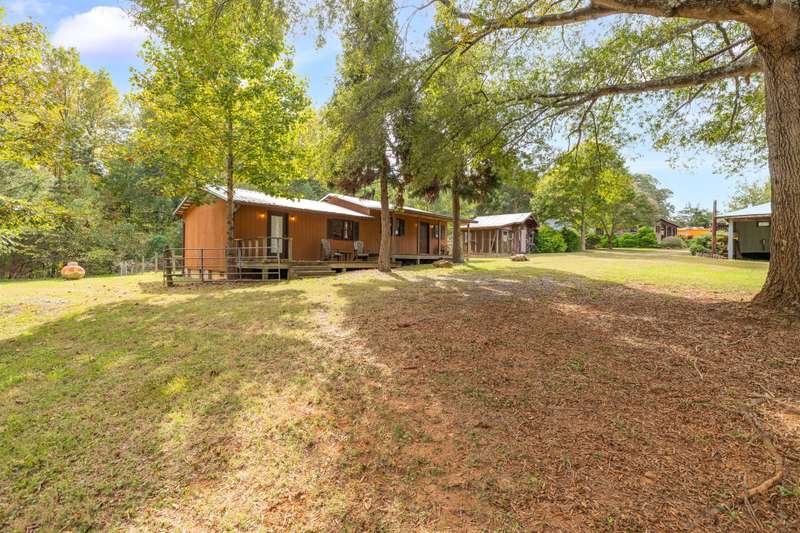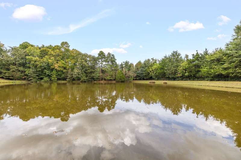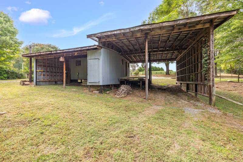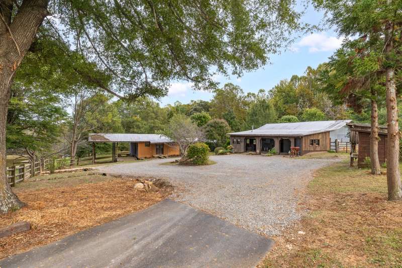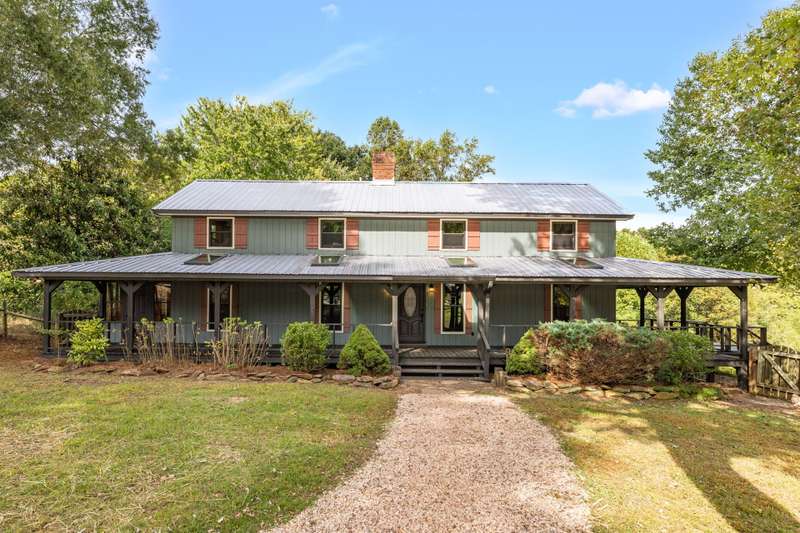 Secluded farm estate on almost 40 acres in Climax, NC! A dream for sustainable living, equestrian pursuits, or a private retreat. The charming main farmhouse features a metal roof, spacious wrap-around porch, 3 beds/3 baths, and a cozy fireplace. Inside, the rustic-chic kitchen boasts extensive wood paneling, wood floors, and a center island. A separate guest house and outbuildings provide flexible space. Car enthusiasts and hobbyists will love the oversized 3-car garage with cabinetry and abundant workspace. The tranquil grounds include a stocked lake with a dock, a substantial barn with horse stalls, 3 paddocks for small farm animals, and pastures ready for farm animals. The acreage is partially cleared/wooded with ultimate privacy, nature trails, extensive garden space, and many possibilities. Many unique features and historical charm! Embrace the ultimate country lifestyle while living only minutes from city amenities!