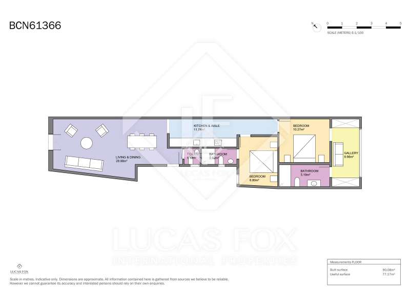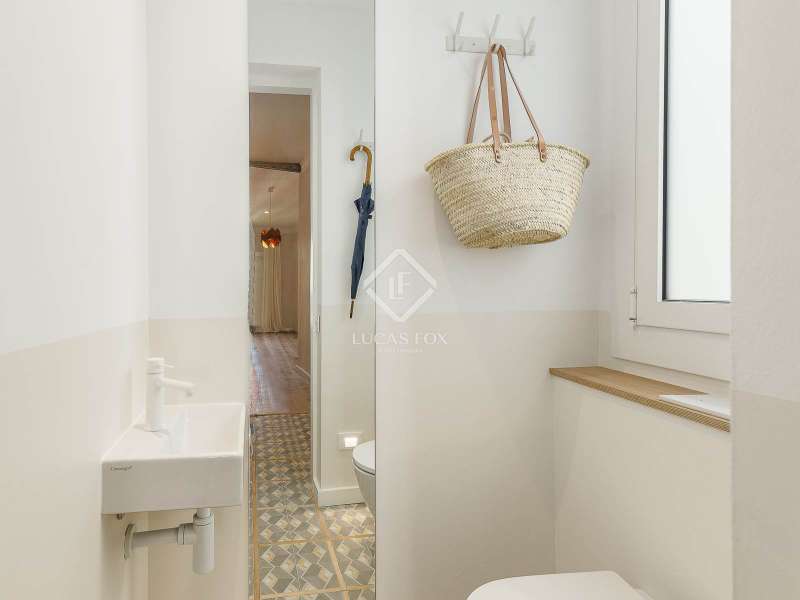 Lucas Fox is delighted to present this exclusive, beautifully renovated apartment located on the coveted Carrer Rosselló, right by Carrer Girona, in the heart of Eixample Right, one of Barcelona’s most vibrant and elegant neighbourhoods. Set within a charming period building dating back to 1930, this home offers a perfect balance of timeless character and contemporary comfort. Boasting a total built surface of 90.03 m², the apartment features a clever, rectangular layout that maximises natural light and creates distinct, well-proportioned living zones. At the entrance, we are welcomed into a spacious 28.9 m² living and dining area, bathed in light and designed for both relaxation and entertaining. This open-plan space seamlessly connects to a fully equipped 11.7 m² kitchen, centrally located for convenience and functionality. The home includes two double bedrooms, a generous 10.2 m² main bedroom and a second 8.0 m² room, ideal for guests, a child’s room, or a home office. These sleeping quarters are tucked quietly toward the rear of the apartment, ensuring peace and privacy. A thoughtfully designed 5.1 m² main bathroom, a 1.9 m² separate toilet, and a 2.0 m² laundry area provide practical touches for everyday living, all arranged along a central corridor that connects the main living area with the private quarters. At the far end, a charming 8.0 m² gallery extends outward, offering flexible use as a sun room, reading nook, or creative workspace. The renovation showcases high-quality finishes, including elegant parquet wood flooring throughout, air conditioning for year-round comfort, and a tasteful aesthetic that blends seamlessly with the character of the original 1930s building. Situated in one of the most sought-after areas of Eixample Right, this property is just steps away from Passeig de Sant Joan, boutique shops, trendy cafés, and excellent transport links. It is the perfect opportunity to own a move-in-ready home in a vibrant yet elegant part of the city, available exclusively through Lucas Fox. Please contact us to arrange a viewing.