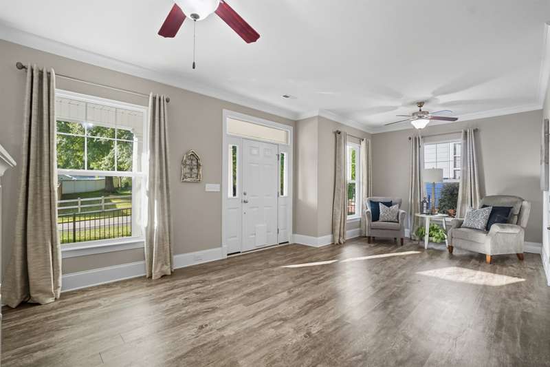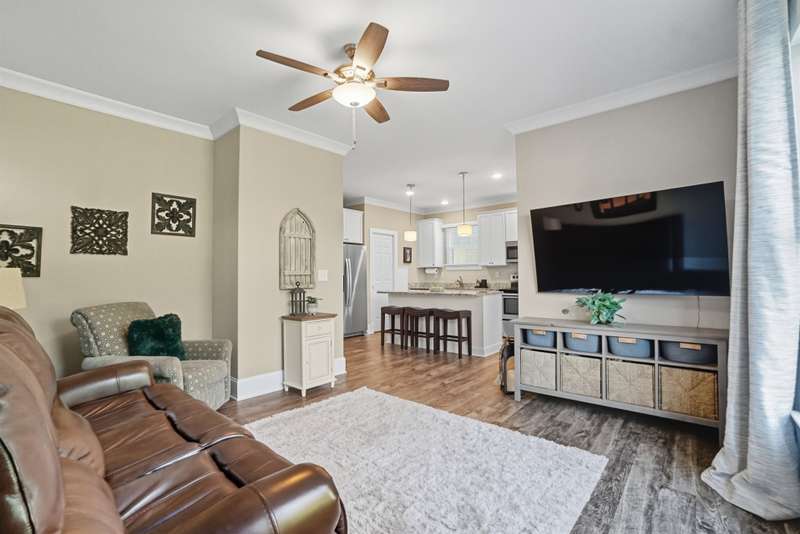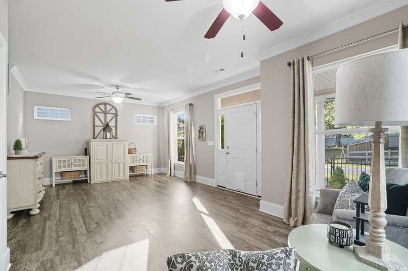 Charming Cottage style with an inviting front patio in a Storybook Setting. Step into this one-of-a-kind cottage-style home that perfectly blends timeless character with modern comfort. From the moment you arrive, the front patio, fenced front yard, and sidewalk-lined street welcome you with warmth and charm. Inside, you'll find a meticulously maintained interior featuring warm neutral colors and craftsman-style crown molding. The beautiful kitchen offers granite countertops, a tiled backsplash, and a walk-in pantry with a pocket door?perfect for keeping everything organized. A spacious mudroom with laundry adds convenience and functionality. Upstairs, the primary suite feels like a private retreat with its tray ceiling, large walk-in closet, double vanity, and tiled walk-in shower. Two secondary bedrooms are generously sized and share another full bath with tub/shower combination. Enjoy the charm of small-town living just minutes from a pedestrian-friendly downtown, where you can step back in time and explore antique shops, ice cream parlors, coffee shops, pizza places, breweries, and wine shops. Plus, the new neighborhood park is only moments away?perfect for leisurely walks or weekend fun. This delightful home offers the best of both worlds: modern craftsmanship and timeless cottage appeal?all in a location that invites you to slow down and enjoy the simple pleasures of life.