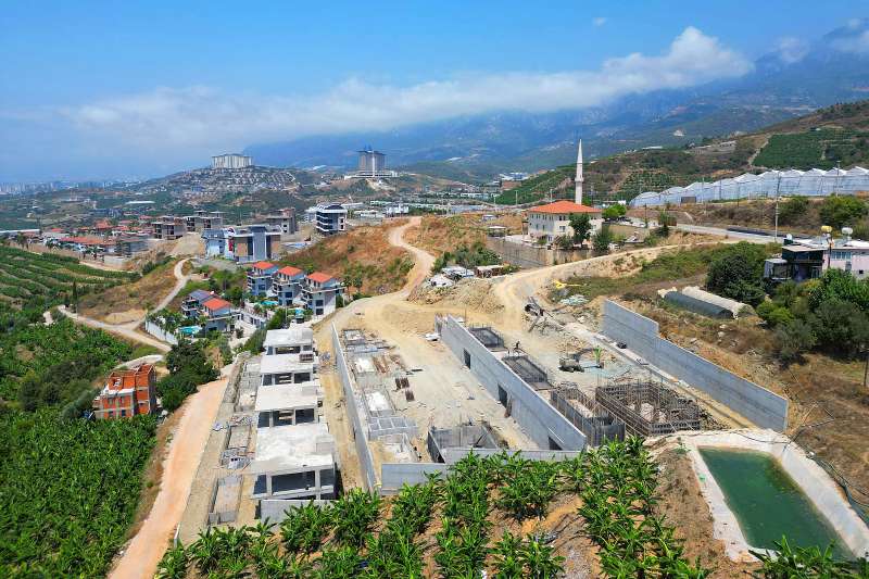 The villas for sale in Alanya are situated in a tranquil area in Kargicak. They are located 1 km from the market, pharmacy, and local bazaar, 3 km from the beach, 4 km from the primary healthcare center, 5 km from Mahmutlar center, 14 km from Alanya center, 28 km from Gazipasa Airport, and 144 km from Antalya Airport.