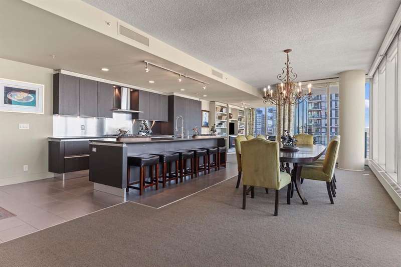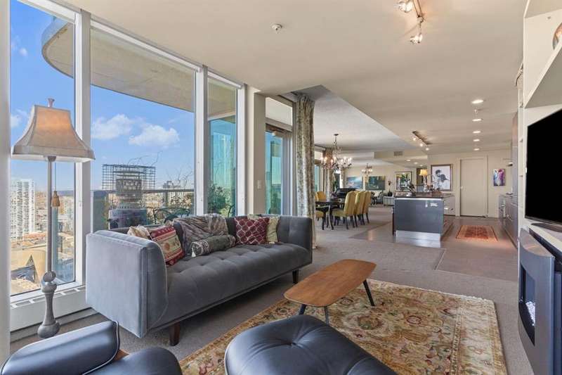 Experience luxury living in this MASSIVE residence in the highly sought after Arriva building. Enjoy complete exclusivity with your own private high-speed elevator. Floor-to-ceiling windows draw in natural light and provide panoramic views of the city and Bow river. This executive home with a sprawling floor plan makes it ideal for entertaining and hosting gatherings. The state-of-the- art kitchen features a full Miele luxury appliance package, and an expansive island that seamlessly opens to the dining room with direct access to one of three balconies where you can take in the iconic views of downtown. Adjacent to the kitchen is an intimate family room with built in cabinetry a warm fireplace and another private balcony. On the opposite side of the kitchen and dining is generous living room providing ample space for gathering and more spectacular views! A private office with built in storage and a powder room are tucked in and away. The primary is a true sanctuary with unmatched views, a balcony overlooking the serene river, an expansive walk-in closet with built ins. This is complete with a spa inspired 5PC ensuite and access to your own home gym, or space for a private dressing room or yoga space. The secondary bedroom has a custom murphy bed, walk in closet, and its own 4PC ensuite providing a private retreat for family or guests. Experience this perfect blend of luxury and privacy. The Arriva building offers 24-hour security and concierge services, two guest suites, a rooftop garden, an owner’s lounge, central A/C, and secure access. Exceptional executive living located in the vibrant Beltline area, steps from Stampede grounds, the new rink, river pathways, restaurants, cafés, central library and LRT access. View the virtual tour or schedule your private showing today!