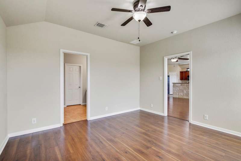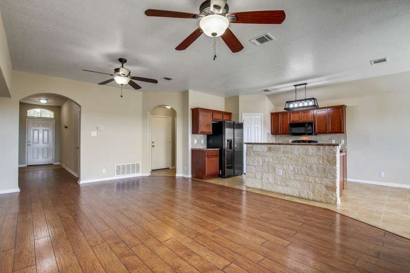 Welcome to this beautiful single-family home in San Marcos, offering the perfect combination of comfort, style, and functionality. This three-bedroom, two-bath residence features an open-concept floor plan that creates a warm and inviting atmosphere, ideal for both everyday living and entertaining. The modern kitchen is the heart of the home, showcasing a large island, a cozy breakfast area, and appliances including a refrigerator. Its seamless flow into the living and dining areas makes it easy to host family and friends. The home’s beautiful stone exterior adds timeless curb appeal, while inside, ceiling fans and large closets enhance both comfort and convenience. Step outside to enjoy a spacious yard complete with a covered patio—perfect for relaxing evenings or weekend gatherings. Located in a desirable area of San Marcos, this home offers easy access to local schools, parks, shopping, and dining. With its thoughtful layout and charming details, this property is ready to welcome you home.