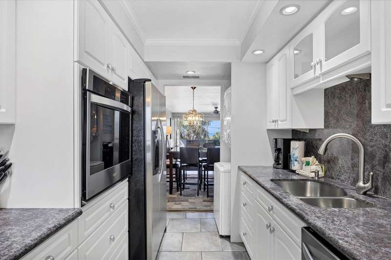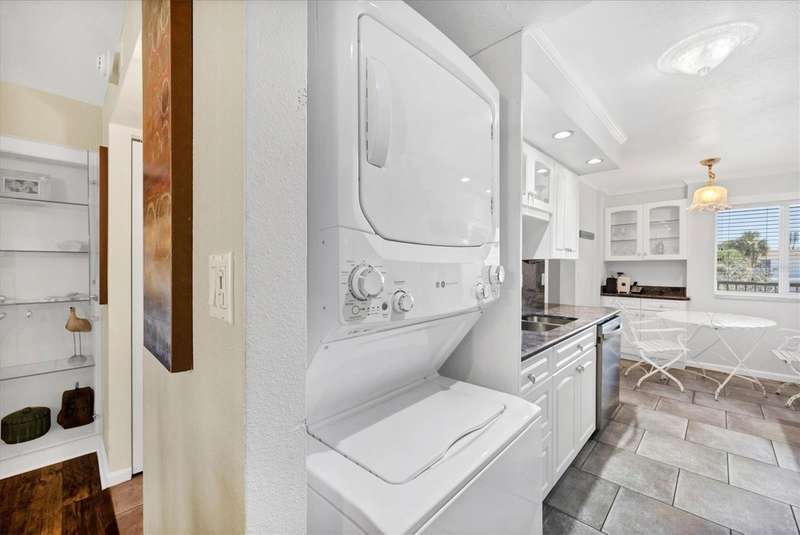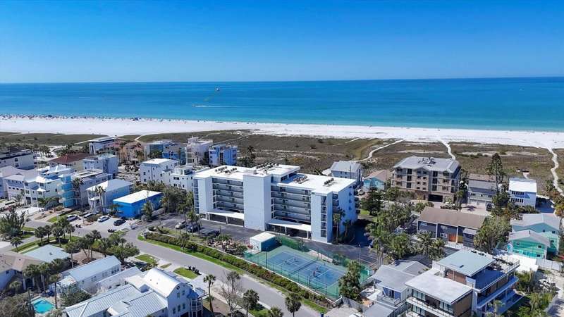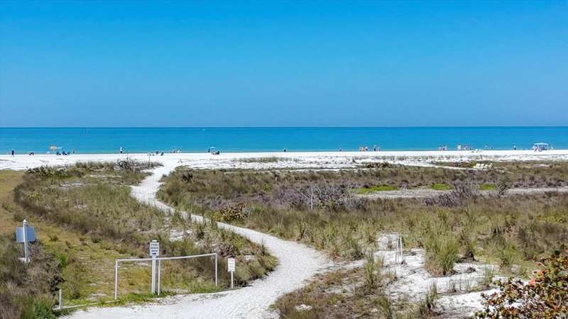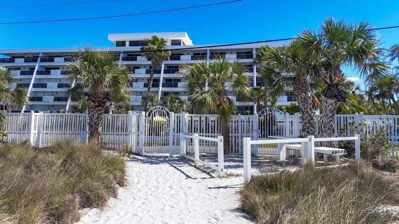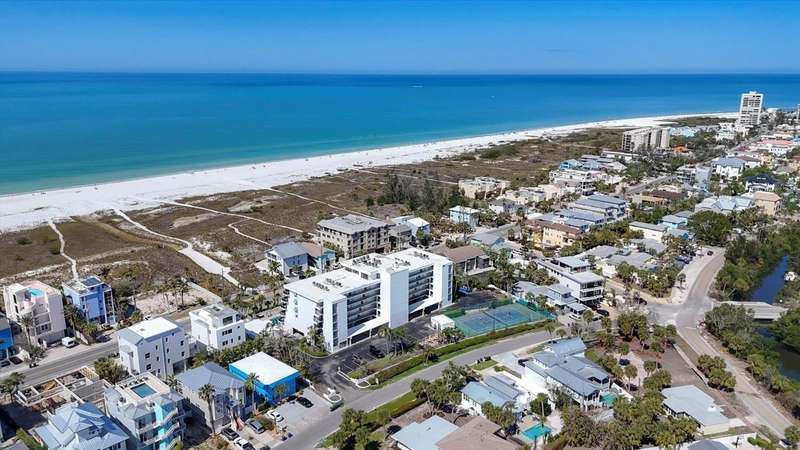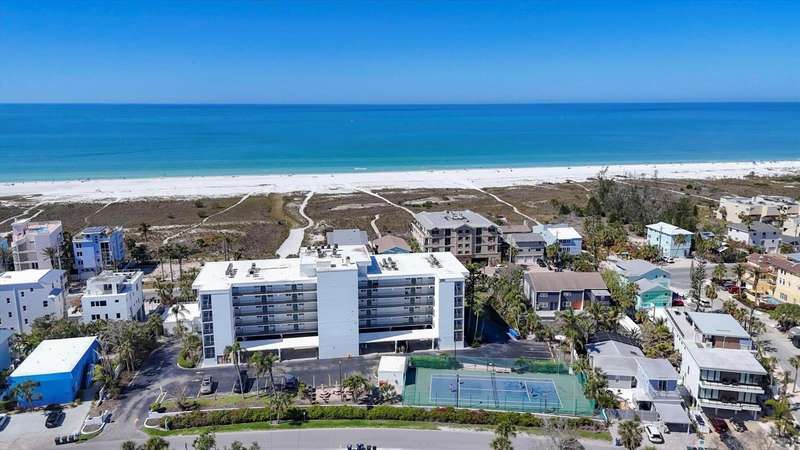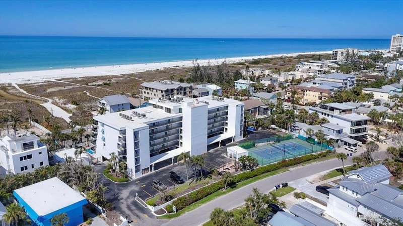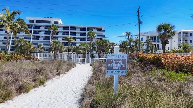 Rare opportunity to experience the ultimate Siesta Key lifestyle in this beautifully appointed, turnkey furnished 2-bedroom, 2-bathroom coveted end unit condo on the desirable second floor, perfectly positioned with direct access to Siesta Key Beach through the exclusive private Tivoli beach entrance. Be captivated by the stunning gulf views and spectacular sunsets from your updated unit featuring a welcoming foyer, a gourmet kitchen with granite countertops, stainless steel appliances, washer/dryer plus a breakfast area, spacious living/dining room with engineered wood floors, and modern bathrooms. Enjoy seamless indoor-outdoor living with sliding doors from both the living room and master bedroom opening to your own private 30 ft balcony overlooking the resort-style pool and the sparkling Gulf. Both bedrooms offer generous closet space including owners’ closets for your convenience. The Tivoli resort is second to none, offering premier amenities: Owners Penthouse Clubroom including a kitchen with unparallelled panoramic Gulf and beach views, very possibly the best on Siesta Key, private beach access, heated pool, tennis/pickleball court, putting green, and a recreation/game room, and outside barbeque area for grilling and picnics. Enjoy the convenience of a private storage unit, a covered underbuilding parking space, plus an onsite rental manager. With a liberal weekly rental policy, this is the ideal investment opportunity. Added bonus for owners is access to a 1 bed/1 bath condo on the penthouse floor for weekly rentals, owned and managed by the association. This well-maintained resort has undergone extensive renovations to ensure peace of mind and a luxurious lifestyle including a new roof in 2023, hurricane-proof windows and sliders in 2006, tennis/pickleball court resurface in 2020. Tivoli is extremely convenient with such a prime location - less than a mile to Siesta Village where quaint boutiques and unique eateries await your discovery and is less than 8 miles to the vibrant culture of Downtown Sarasota. Unit 207 is ideal for both personal enjoyment and lucrative weekly rentals. Don’t miss your chance to own this unique and exceptional piece of paradise!