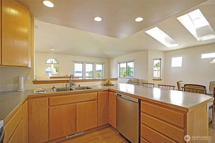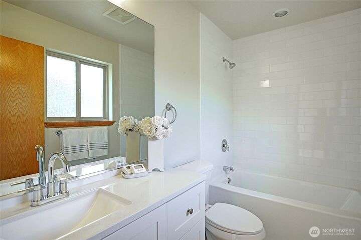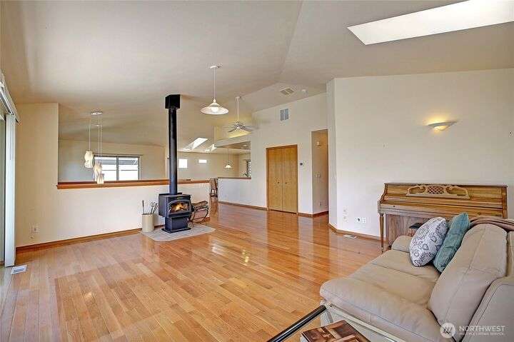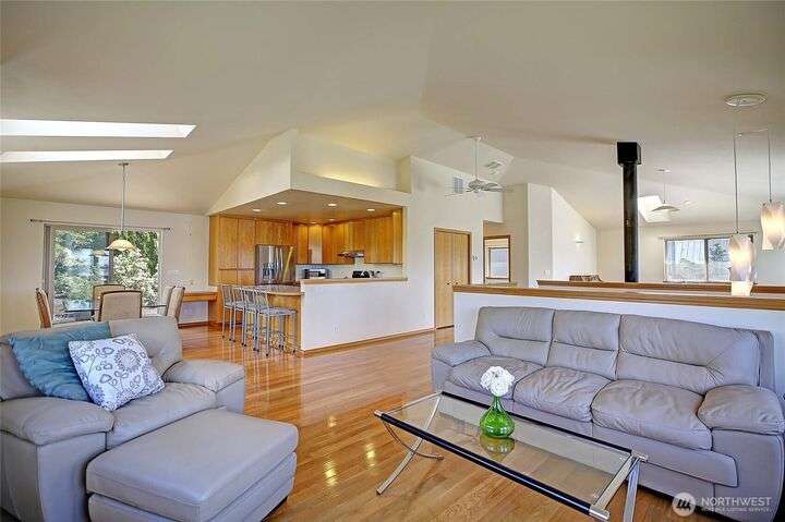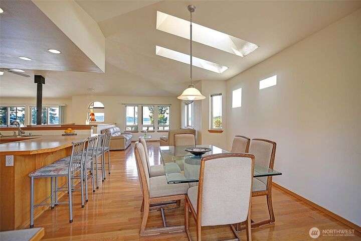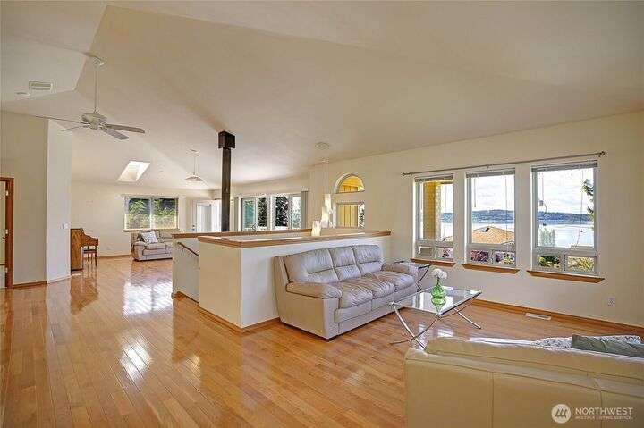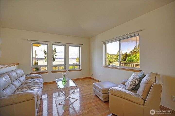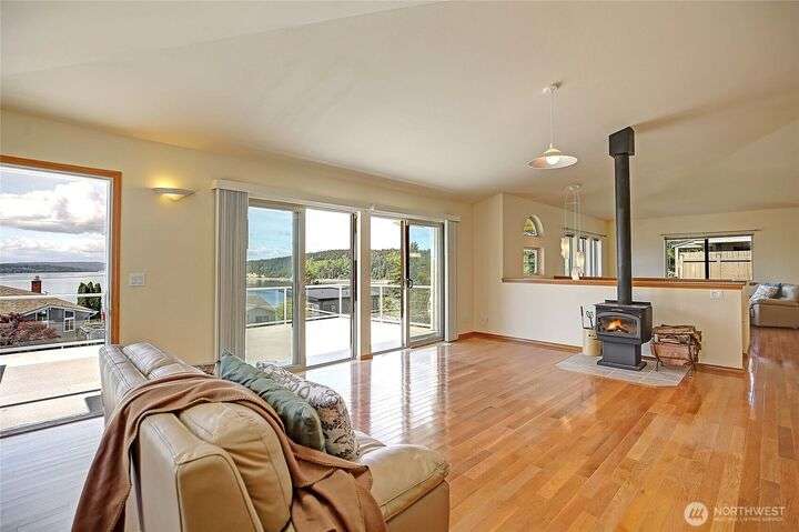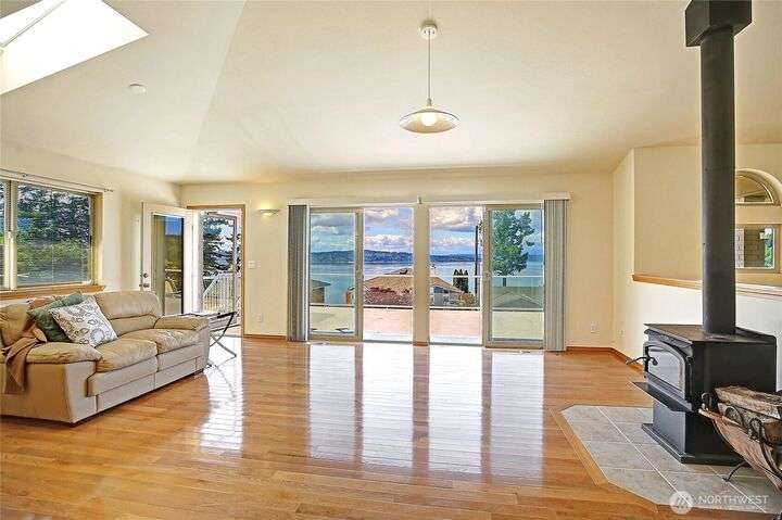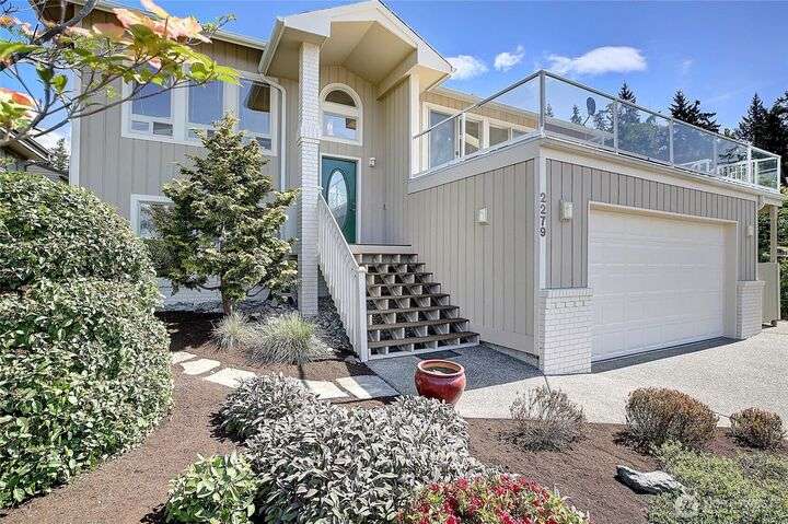 Island Life in this beautifully maintained 3-bedroom, 2.5-bath home that offers breathtaking views of Saratoga Passage. Wake up to the serene beauty of the water & enjoy sunsets from nearly every room. Freshly updated with new Primary Ensuite, carpet, exterior paint & landscape this home is move-in ready and designed for both relaxation & functionality. Open concept spacious layout with generous living areas, a well-appointed kitchen, and plenty of natural light throughout. Storage is no issue here—this property boasts an oversized 3-car garage, a separate workshop and loads of storage space to keep everything organized and out of sight. With private beach access just minutes away, you'll enjoy the ultimate in Pacific NW coastal living!