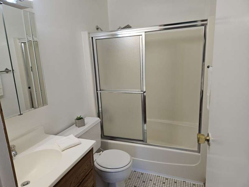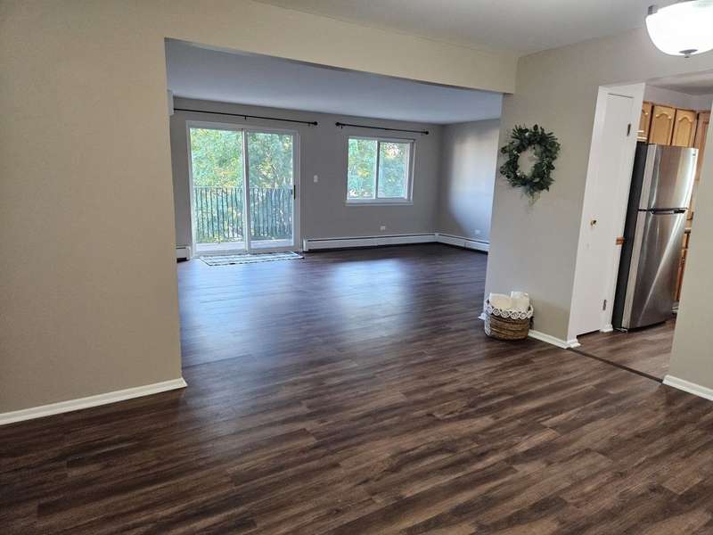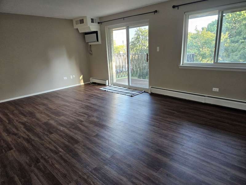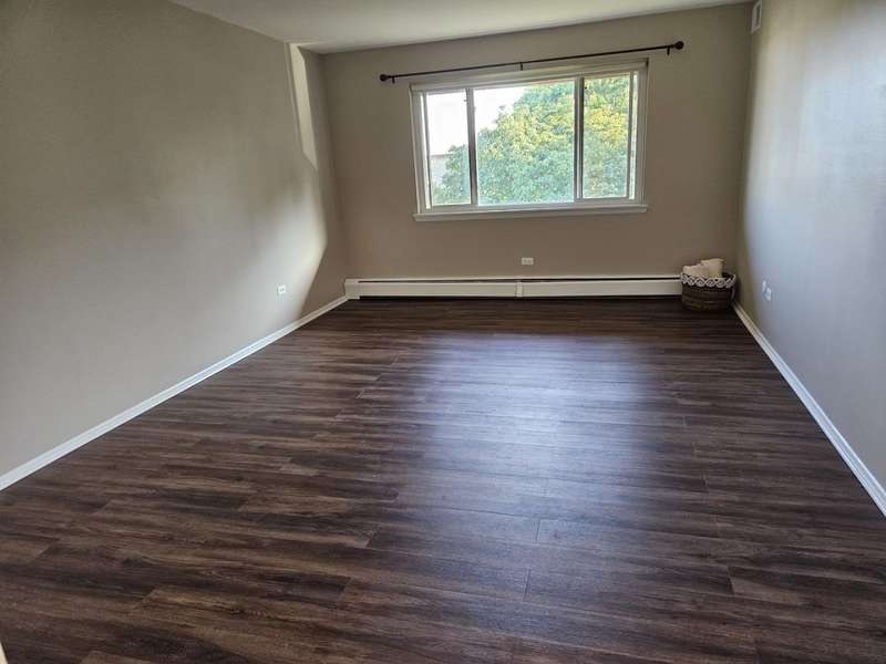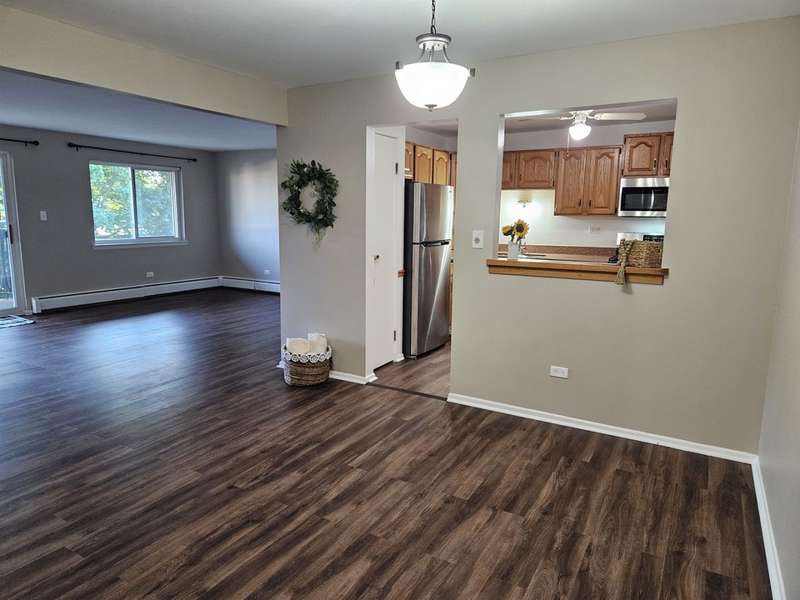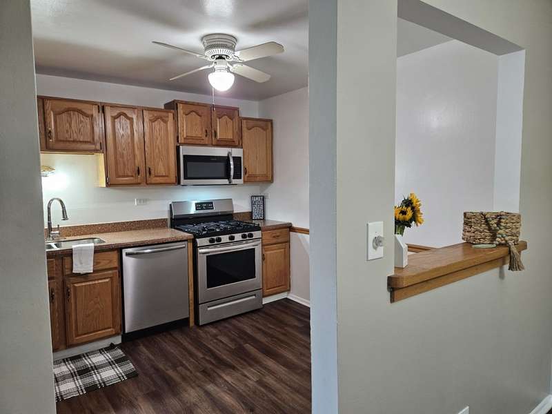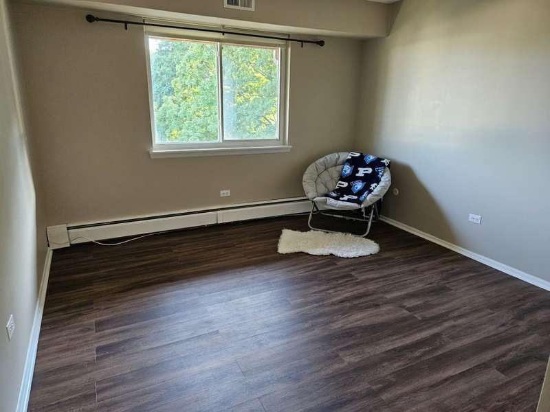 Top floor unit that is one of the best in the complex. RENT INCLUDES HEAT, WATER AND ONE DESIGNATED PARKING SPACE #142 with a 2nd space in the unmarked area. This 2 bedroom 2 bath condo near downtown Arlington Heights is spacious, light and bright. This condo boasts an open layout with an inviting atmosphere that will make you feel right at home. It is freshly painted with laminate floors and stainless steel appliances that include a stove, an above-range microwave, refrigerator, and dishwasher. The primary bedroom has a large walk-in closet and its own bathroom. The laundry room is conveniently located steps from the unit's front door. The designated parking space is #142; a second space is available in the unmarked spots. Scarsdale Estates is in a prime location, and building 445 has its entrance from Cleveland (closest to Davis Street) in the highly desired Park Manor neighborhood. With easy access to various amenities and attractions, and high-ranking schools - Dryden Elementary, South Middle School, and Prospect High School. This excellent location, one mile from downtown Arlington Heights, allows for easy access to local restaurants, shops, and the Metra train. Swimming Pool in the complex.