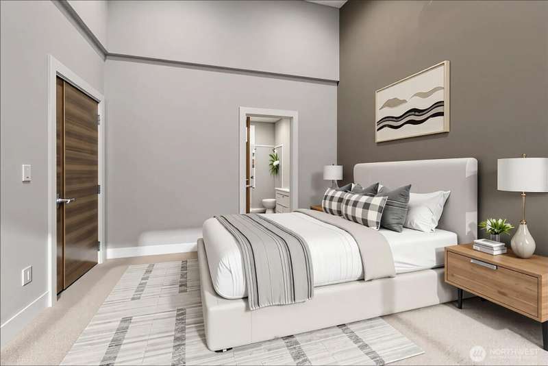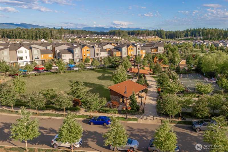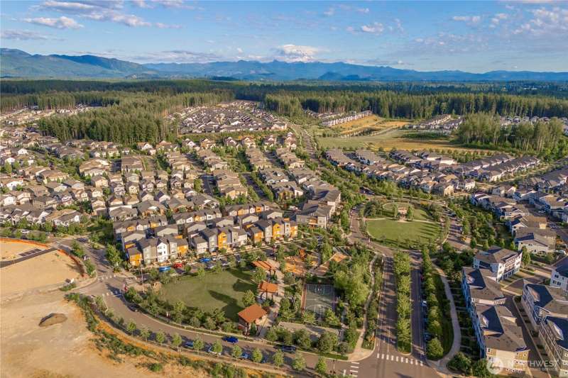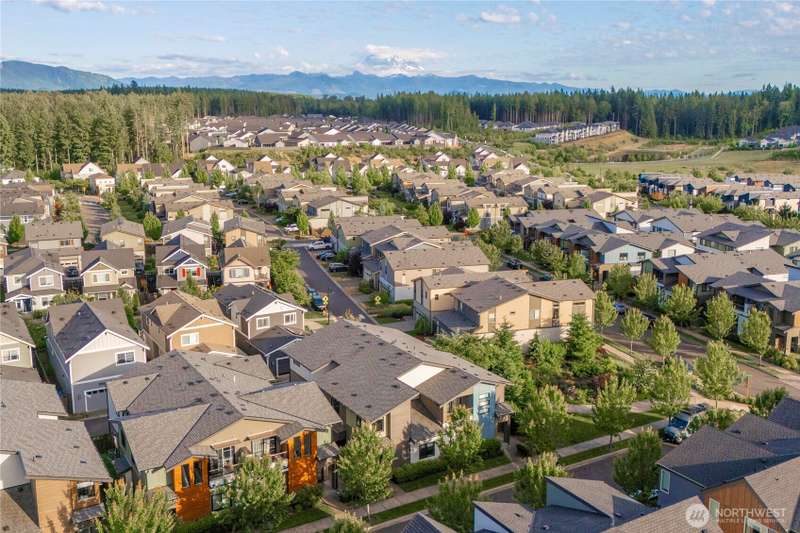 Welcome home to contemporary comfort in this modern Ichijo residence, perfectly situated in the sought-after Ten Trails community. Designed with state-of-the-art features and a functional floor plan, it offers open-concept living with a sleek chef’s kitchen boasting quartz countertops, stainless appliances, and ample storage. A cozy living area with a fireplace opens to a private patio with BBQ hookup. The main-floor primary suite adds convenience, while upstairs offers additional bedrooms, a loft, and stunning Mt. Rainier views. Smart home technology, A/C, and access to parks, trails, sports courts, events, and a future shopping center complete the package.
