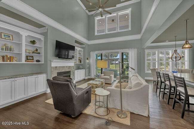 Discover lakefront living at its finest in The Bluffs on the Cape Fear, a natural, woodsy haven offering both elegance and relaxation. From the welcoming paver driveway to the double rear porches with serene lake views, this home blends comfort and beauty. Step inside to soaring 18-foot ceilings filled with natural light, a cozy gas fireplace framed by crisp built-ins, and warm wood flooring throughout. The chef's kitchen is a dreamfeaturing a large center island, farmhouse apron sink, instant hot water dispenser, gas cooktop with stainless vent hood, and abundant cabinetryperfect for both entertaining and everyday living. Dine casually in the breakfast nook or host in the formal dining room. This unique home offers two master suites, including a remodeled first-floor retreat with a spa-like bath and oversized shower. A sunroom overlooking the lake invites quiet moments with a good book, while the patio, grilling area, and firepit set the stage for gatherings. Additional highlights include custom plantation shutters, walk-in floored attic storage, and efficient gas pack heat and water heater. Generac whole home generator. Exterior painted in 2025. Enjoy resort-style amenities just a short stroll awayclubhouse, pool, tennis and pickleball courts, a kayak launch on the fully stocked lake, miles of scenic walking trails, and a riverfront boardwalk. Best of all, residents enjoy private access to the community's exclusive Beach Club at Oak Island.