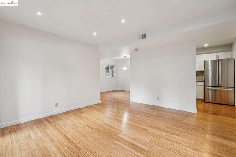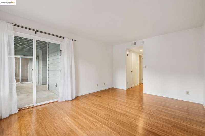Nestled in a tranquil Oakland Hills setting adjacent to Leona Canyon Regional Open Space Preserve, this light-filled, level-in condo offers comfort and privacy with two ensuite bedrooms, each featuring a walk-in closet and opening to the private patio. The bedrooms are thoughtfully positioned on opposite sides of the open-concept living area, creating ideal separation and privacy. The inviting living space includes a fireplace, bamboo floors, and recessed lighting. The kitchen opens to the dining area and breakfast bar, offering an easy flow for everyday living and entertaining. Enjoy in-unit laundry, a community pool, and a seasonal pool—all within a serene hillside community with direct trail access and easy freeway connectivity.