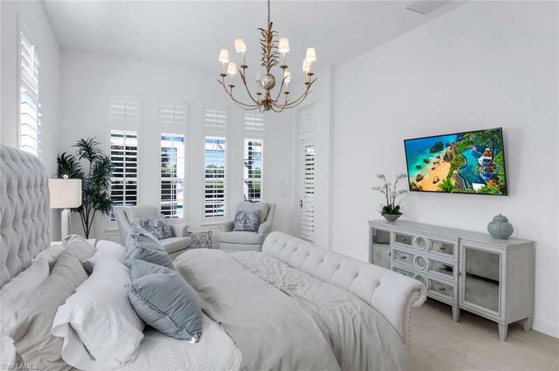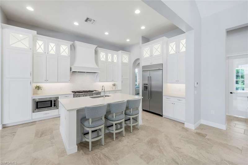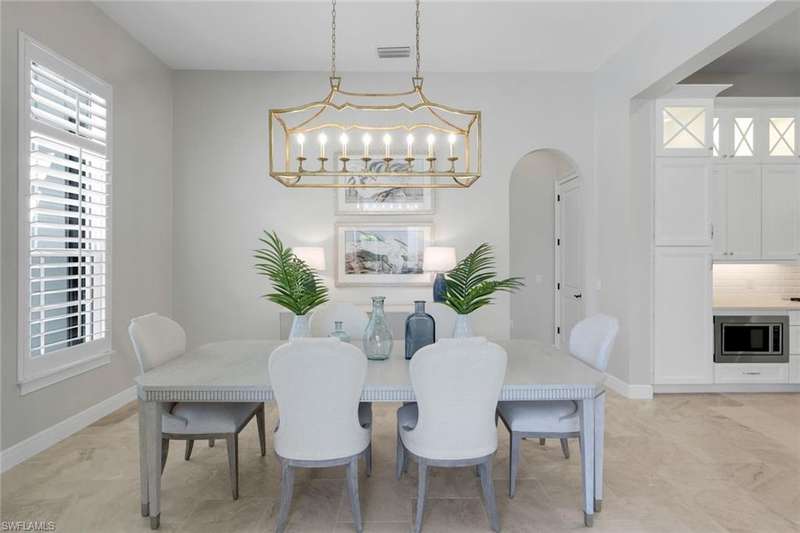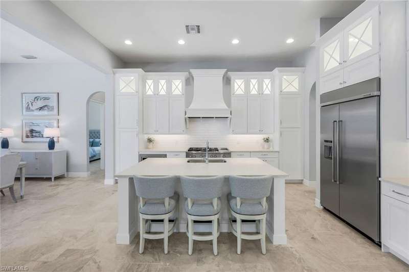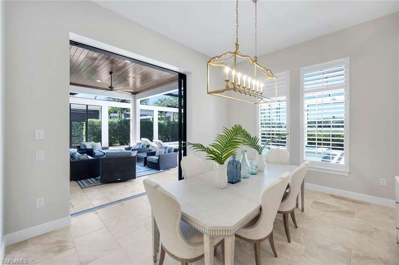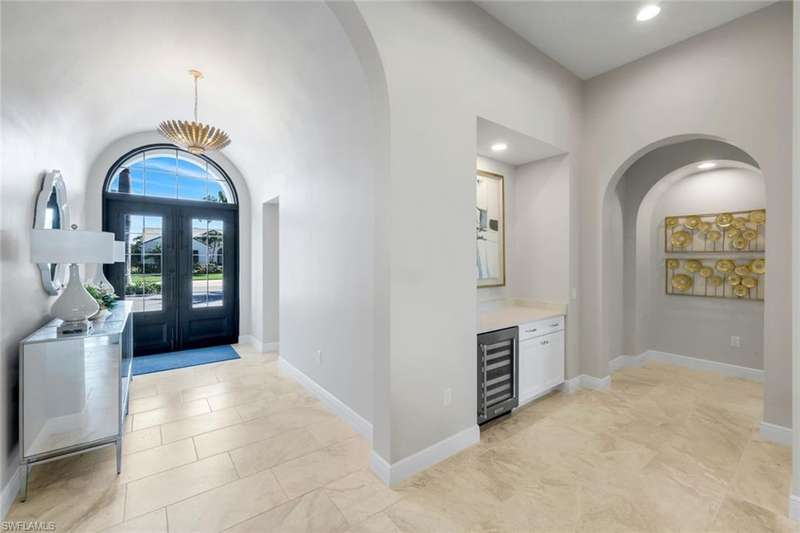 Refined Luxury Living in Fiddler s Creek. Experience sophisticated resort-style living in this beautifully curated residence located in the prestigious community of Fiddler s Creek. Perfectly positioned to capture wide golf course vistas, this home blends modern design with timeless elegance, surrounded by professional landscaping and enhanced by ambient evening lighting. Step through elegant French doors into a light-filled interior highlighted by 14-foot ceilings, a graceful foyer, and striking designer flooring. The spacious great room seamlessly extends outdoors through 10-foot impact glass sliders, revealing a spectacular lanai complete with a resort-style pool and spa, sun shelf, bubblers, and an impressive summer kitchen perfect for entertaining or quiet relaxation. A wood-accented ceiling adds warmth and architectural character to this inviting outdoor retreat. The gourmet kitchen is both stunning and functional, showcasing an expansive white quartz island, KitchenAid applian