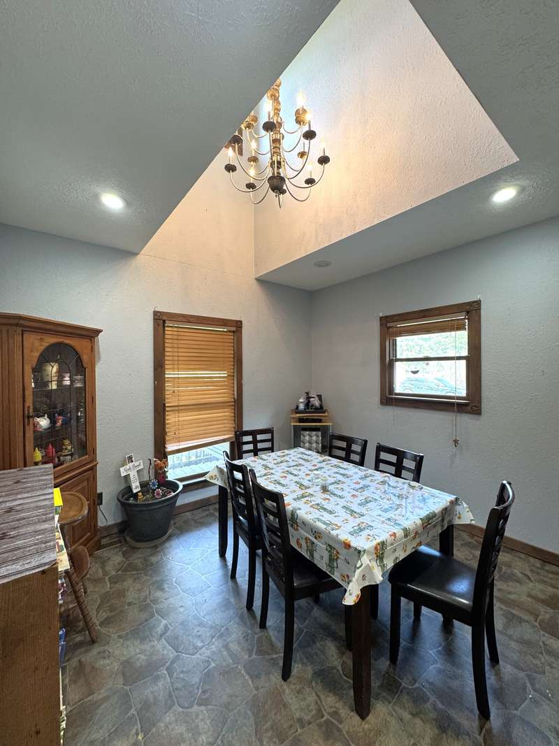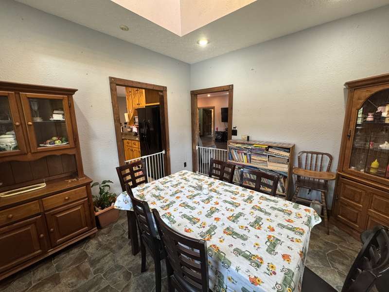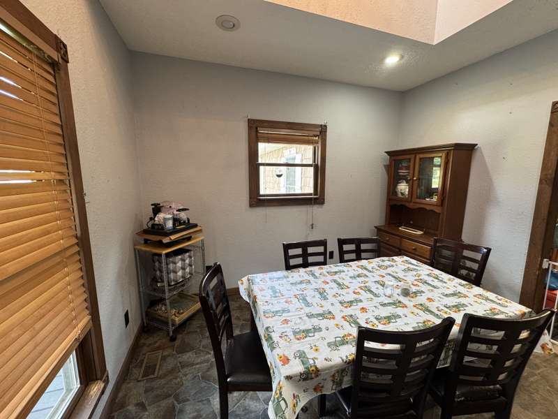 Spacious 4-Bedroom home on 6.11 acres with creek along one side! Open floor plan with trey ceilings, formal dining room and plenty of natural light. Relax and entertain outdoors with a covered porch, covered deck and a fenced yard perfect for pets or play. This property offers both attached and detached garages for extra storage or workshop space. Enjoy the peaceful setting with room to roam while still having all the comforts of home. Mini storage barn on property does not remain.