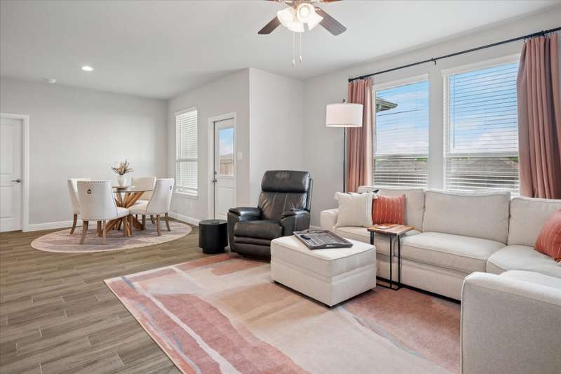 BUYER BONUS! SELLERS OFFERING $7500 FOR AN INTEREST RATE BUYDOWN OR USED TOWARDS BUYERS CLOSING COSTS! PLUS SELLER PAID TITLE POLICY. Washer,Dryer,Refrigerator conveys with home at no cost to buyer. Gently lived-in 4-bedroom, 2-bath home in Country Club Terrace, built in 2022 and located on a quiet street. This 1,845 sq ft home features ceramic tile flooring, an open-concept living and dining area with abundant natural light, and a smart home system for modern convenience. The kitchen offers a center island, walk-in pantry, Jenn Air Gas Range and overlooks the spacious living areaperfect for entertaining. Split-bedroom layout provides privacy, with a generous primary suite and ensuite bath. Enjoy the covered front porch, 2-car garage, and nicely landscaped front yard. Zoned for highly rated Guyer High School. Move-in ready and perfectly situated in a peaceful neighborhood. Care has been taken to provide accurate information, Buyer and Buyer Rep to verify all information regarding square footage and schools.