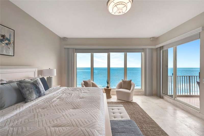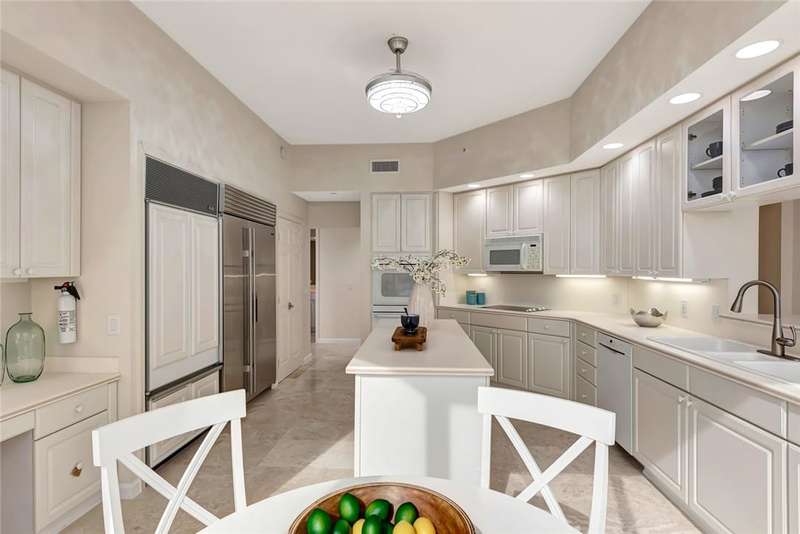 Panoramic ocean views from this lovely penthouse condo. Elevator opens to your own private foyer. All major rooms have ocean or river views. The living room has floor to floor windows w/direct ocean views & a gas fireplace. Island kitchen with a breakfast nook has both river & ocean views. Oceanfront Master bedroom w/balcony access, walk-in closet, full bath + half-bath. Guest bedrooms have lovely river views. Private 1 & 2 car garages. Exercise room, pool, tennis & beach access. Condo Maint. $10,065 Quarterly, 1-Car garage 130 Q, 2-car garage $250 Q, storage 22 Q. Sizes approx/subj. to error.