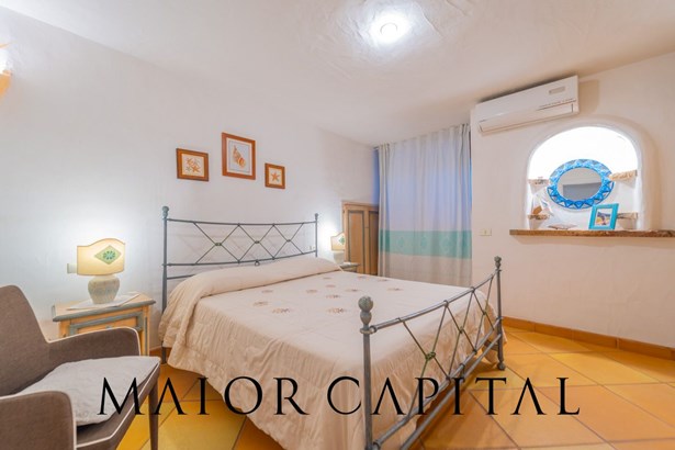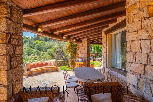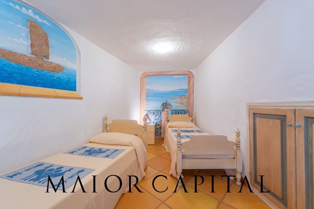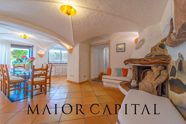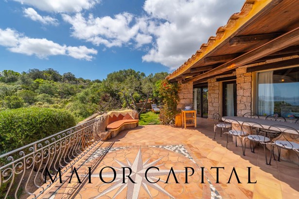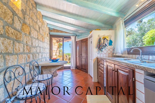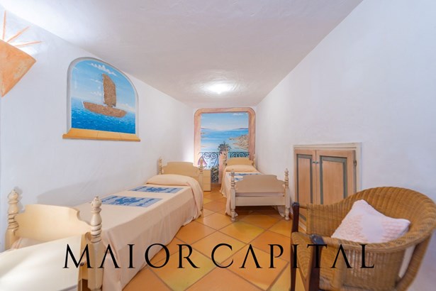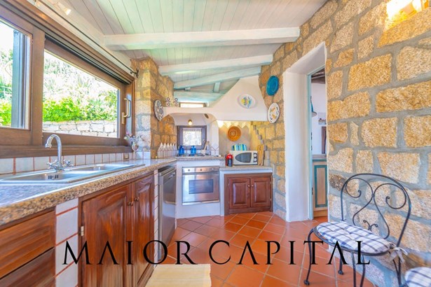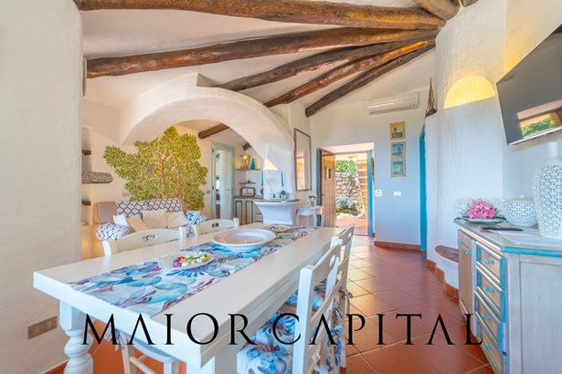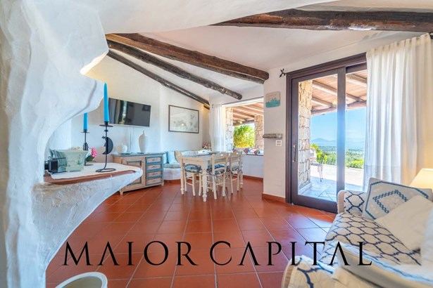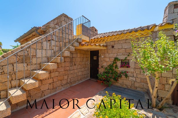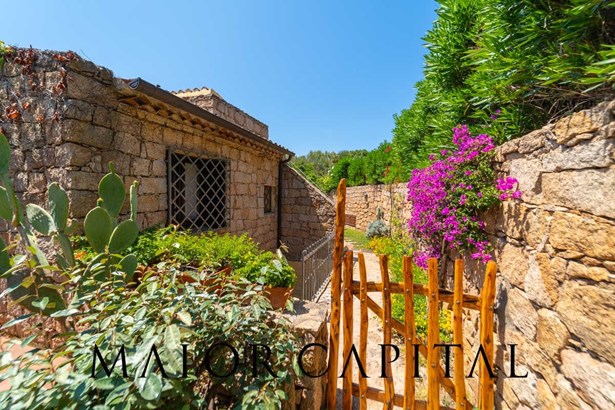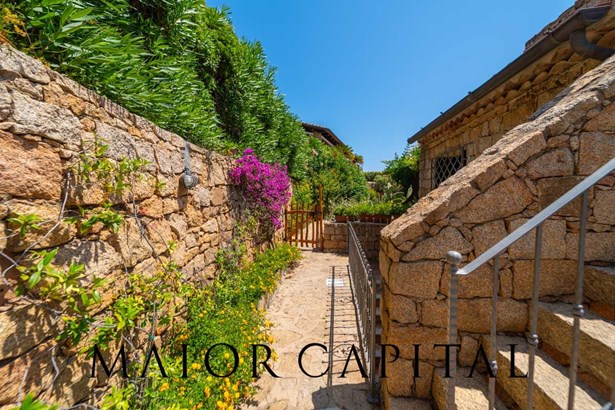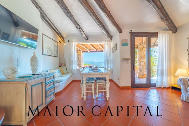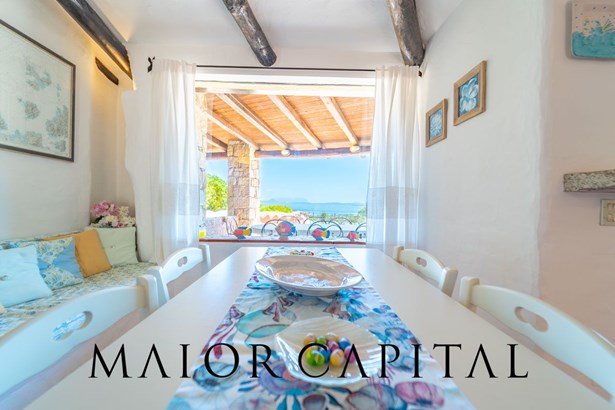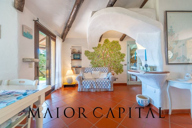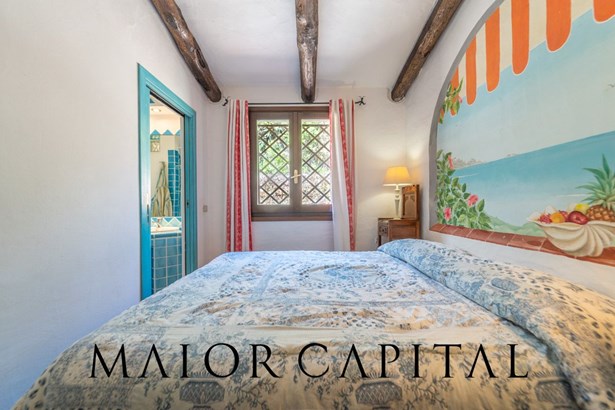 Spread over two completely independent levels, the villa boasts sinuous and classic lines, typical of the Costa Smeralda style. The beamed ceilings and the brick kitchen are perfectly integrated into an ambience that exudes class and elegance. The living room on the ground floor overlooks the sea and includes a panoramic dining room and a separate kitchen that enjoys direct access to the garden, bringing incredible natural light into the interior. Two double bedrooms, one with en suite bathroom, complete this floor, offering spacious and refined spaces.