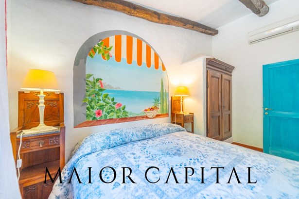 A distinctive element of this property are the frescoes, which embellish the interiors. At the entrance, a fresco depicts a tree, while in the fireplace on the semi-basement level, one can admire a fresco depicting the beach with rocks by the sea. These artistic details create a deep connection with the surrounding nature and lend a romantic and authentic atmosphere to the house.