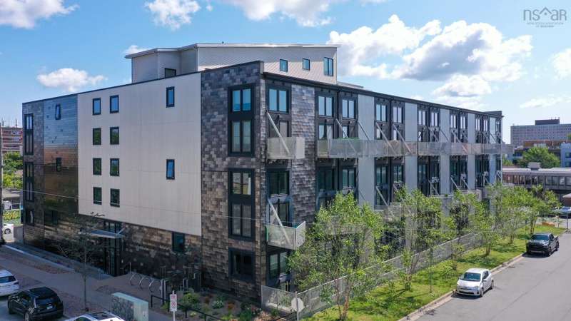 Top floor at Q-Lofts in the heart of central Halifax. This top floor unit is bright, spacious, and airy. Skylight, garden doors to balcony and the soaring 15 ft ceiling provide loads of natural light. The open layout features a large, combined Living / Dining / Kitchen with Quartz counter tops, centre island eat-up bar and stainless-steel appliances. A flex room / bedroom, 3-piece bath and main floor laundry complete this level. Upstairs is the loft primary suite with ample closet space and marble tiled ensuite bath. The building is LEED certified for maximum energy efficiency. Amenities include PH level fully equipped common lounge area with kitchen / dining / rooftop deck with bbq's, a gym, and guest suite. Secure building with on-site resident manager, convenient underground parking spot and storage unit; walking distance to shops, grocery, craft brew pubs, restaurants, Yoga studio and more. Enjoy the unique vibe central / north end Halifax has to offer.