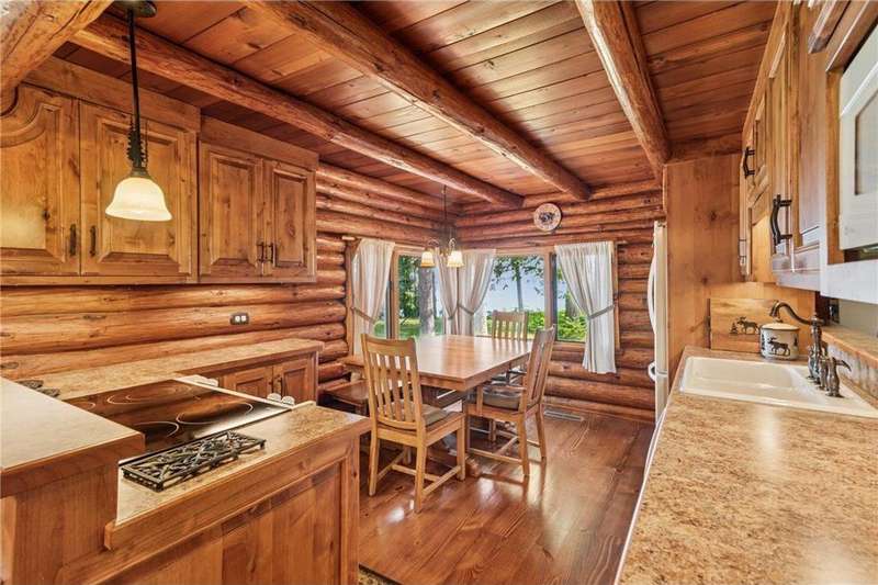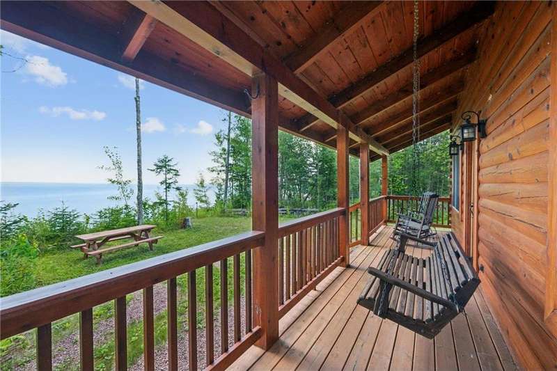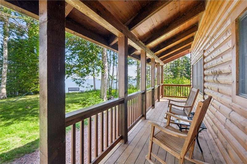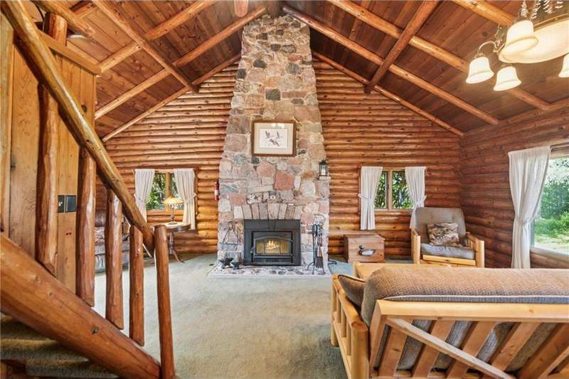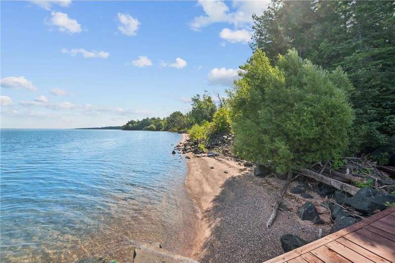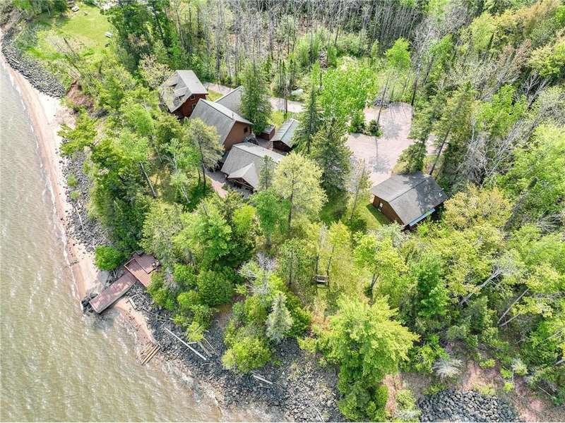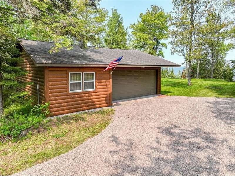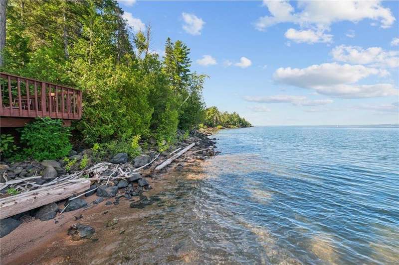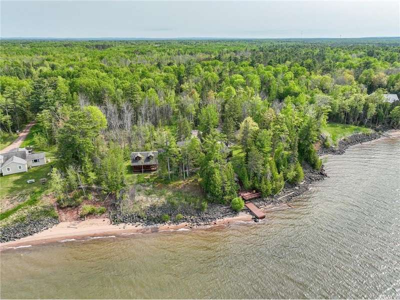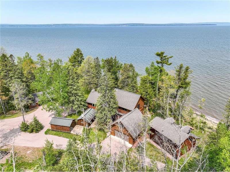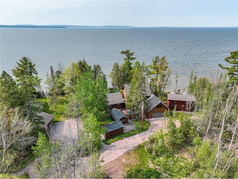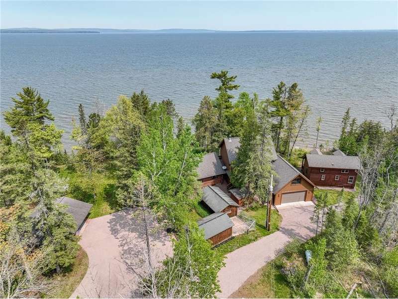 Luxury log cabin estate nestled above 267 feet of pristine shoreline, this stunning Swedish-style log home with a 2013 addition blends craftsmanship, comfort, and breathtaking views. Just five minutes from Ashland, it’s ideal as a year-round residence or private lakeside retreat. The main home features a luxurious owner's suite, soaring pine ceilings, cedar and oak finishes, and a great room with a floor-to-ceiling stone fireplace. The second level offers cathedral ceilings, a cozy wood stove, and a balcony with sweeping lake views. The original log home includes a second bedroom, a fully renovated kitchen with custom cabinetry, and an updated ¾ bath with heated stone floors. Enjoy outdoor living on the expansive deck, dock, or one of three covered porches with panoramic views of Long Island, Madeline Island, Bayfield, Washburn, and unforgettable sunrises and sunsets. A charming log guest house offers a bedroom, ¾ bath, kitchen, loft, and wood stove—perfect for visitors. Additional features include a heated two-car garage with upper-level potential, a detached three-stall garage/workshop, multiple outbuildings, and a 36'x56' steel-reinforced pole barn. This exceptional property offers the ultimate in Northwoods lakefront living.