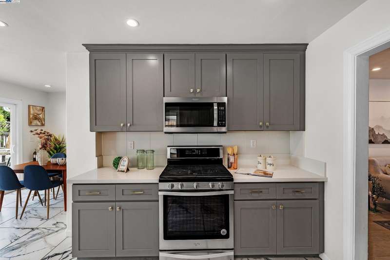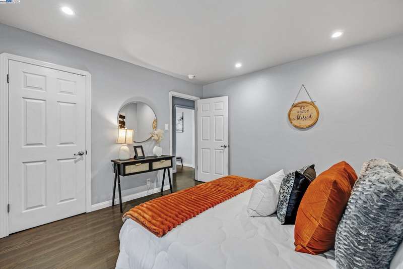 This stunning 3-bedroom, 2-bath home has been thoughtfully remodeled and is ideally located in the heart of Castro Valley—just minutes from Lake Chabot, top-rated schools, BART, shopping, dining, gyms, and easy freeway access. The main home offers 2 bedrooms and 1 bath with a bright, open layout featuring refinished hardwood floors, recessed lighting, and a fully remodeled kitchen with sleek cabinetry, stainless steel appliances, gas stove, and modern finishes. A bonus room with its own full bath provides endless possibilities—perfect for a guest suite, private office, gym, or creative studio. With fresh exterior paint, upgraded plumbing, energy-efficient windows, and ample parking, this home combines modern comfort, style, and convenience in a highly desirable location.