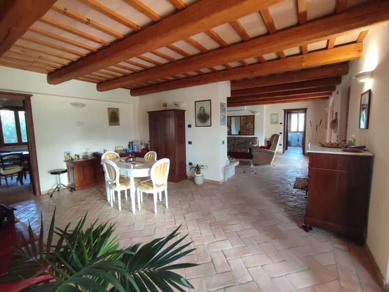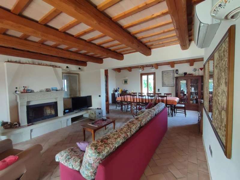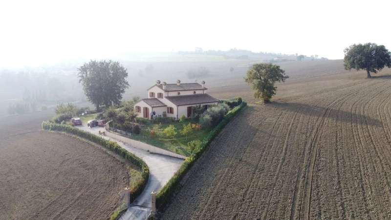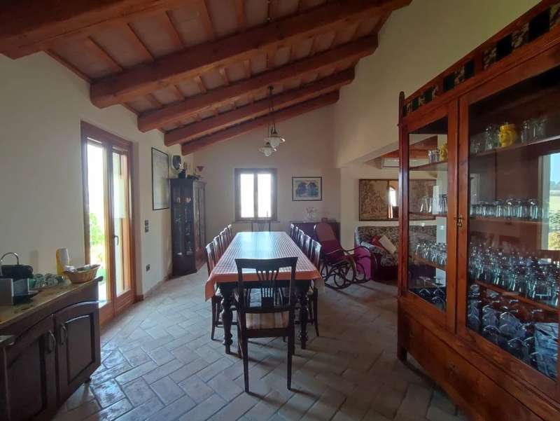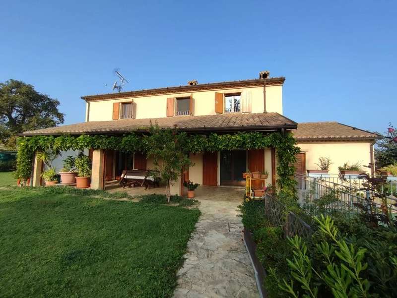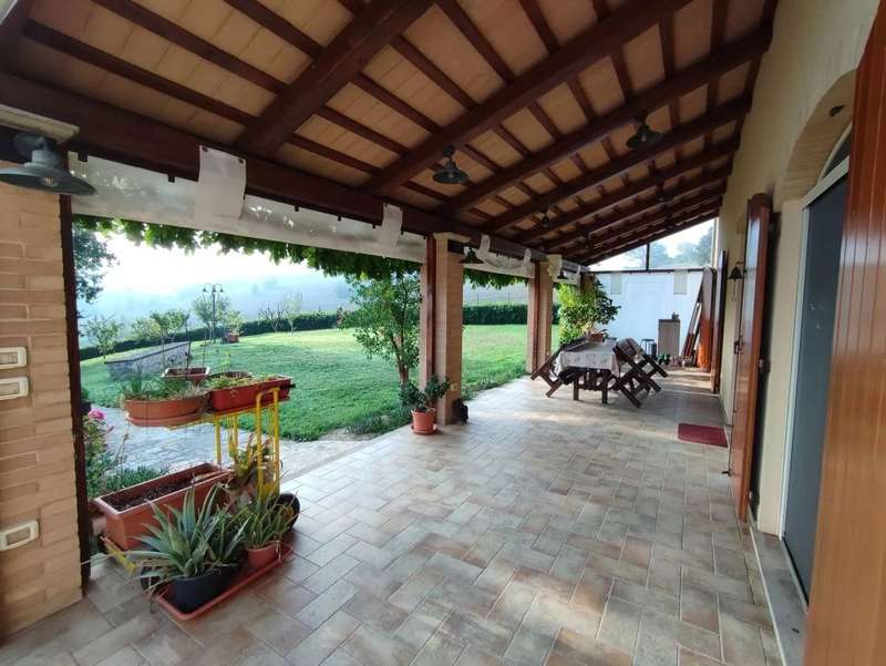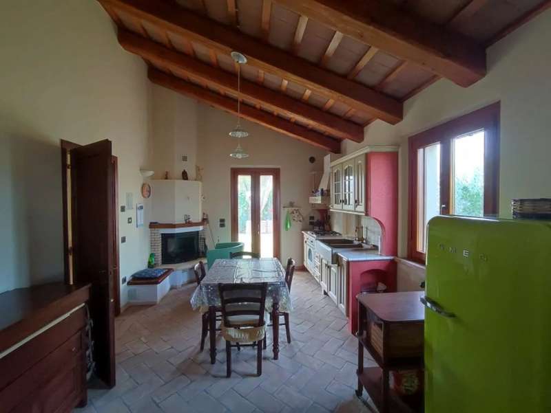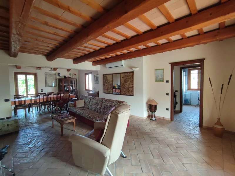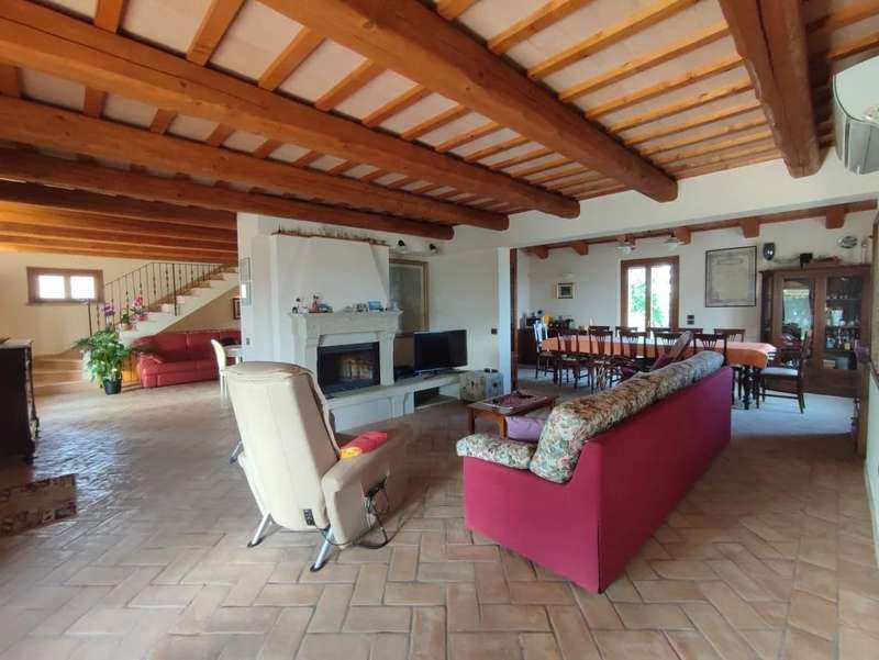 Fano (PU) Carignano. Positioned on a Poggio with private road, we offer for sale a typical Marche farmhouse "demolished and rebuilt": just 15 minutes from the Adriatic Sea, nestled in the heart of the Marche's first hills, easily accessible and well connected to the main roads. The property is accessed from the private road, where there is an automatic gate, parking for 5-6 cars, a garage, a double cellar and a large tavern with thermo-ventilated fireplace, brick kitchen, billiard table, bathroom with hydromassage shower, laundry and technical room. On the ground floor we find the open-space living area with central fireplace, eat-in kitchen with thermo-ventilated fireplace, bathroom and a bedroom. On the first floor we find the sleeping area consisting of master bedroom, bathroom with shower and master bedroom with walk-in closet. The garden is fully fenced, there is a well and you can make your own pool ideal for spending moments of relaxation. Underfloor heating system, two thermo-ventilated fireplaces, air conditioning, central vacuum cleaner, alarm. The best use was made of the land to create a basement and foundations, following the earthquake-resistant regulations. The roof with exposed beams and reinforced concrete structure were thermally insulated and made with first-rate materials. The driveway was also redone with stabilized, breccia and drainage channels to ensure the utmost attention to detail. 780.000€ "APE E" IPE: 148,3 kwh/mqanno