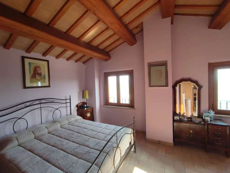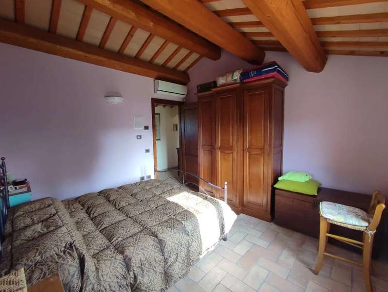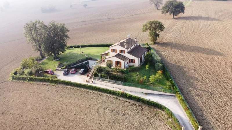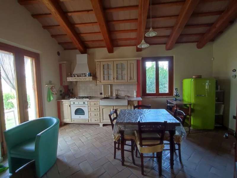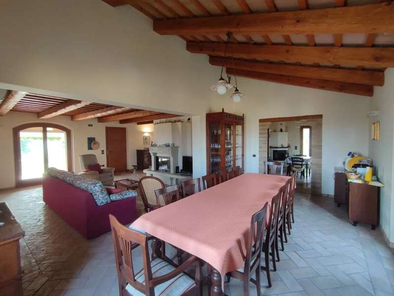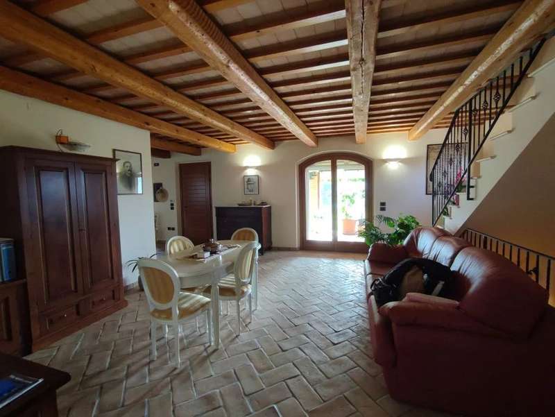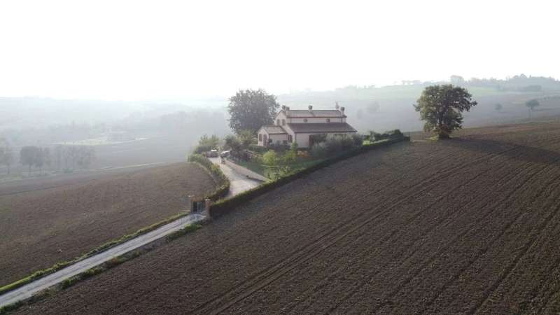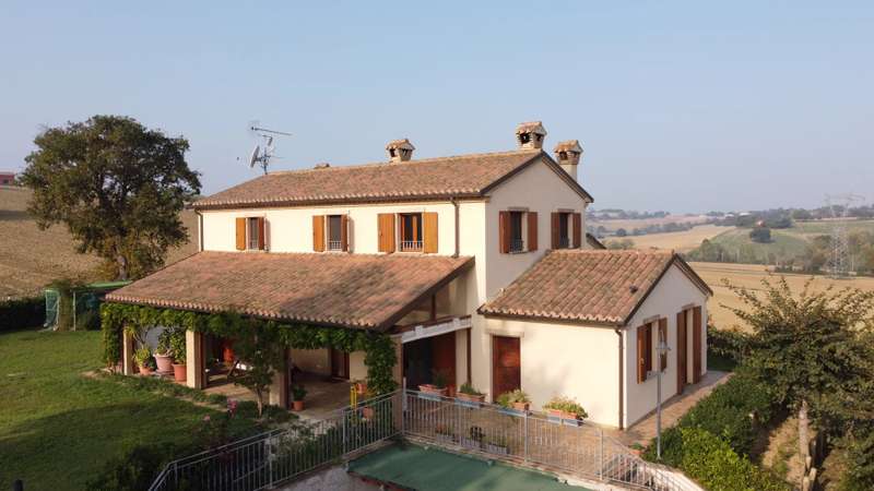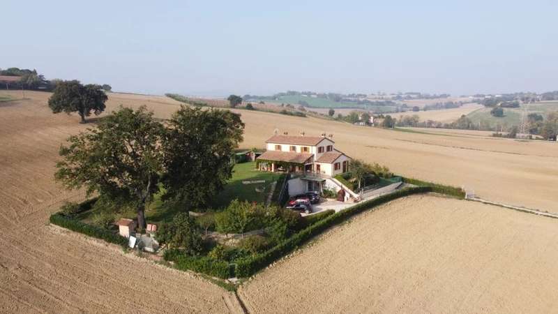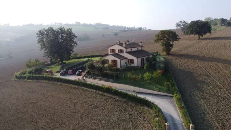Fano (PU) Carignano. Positioned on a Poggio with private road, we offer for sale a typical Marche farmhouse "demolished and rebuilt": just 15 minutes from the Adriatic Sea, nestled in the heart of the Marche's first hills, easily accessible and well connected to the main roads. The property is accessed from the private road, where there is an automatic gate, parking for 5-6 cars, a garage, a double cellar and a large tavern with thermo-ventilated fireplace, brick kitchen, billiard table, bathroom with hydromassage shower, laundry and technical room. On the ground floor we find the open-space living area with central fireplace, eat-in kitchen with thermo-ventilated fireplace, bathroom and a bedroom. On the first floor we find the sleeping area consisting of master bedroom, bathroom with shower and master bedroom with walk-in closet. The garden is fully fenced, there is a well and you can make your own pool ideal for spending moments of relaxation. Underfloor heating system, two thermo-ventilated fireplaces, air conditioning, central vacuum cleaner, alarm. The best use was made of the land to create a basement and foundations, following the earthquake-resistant regulations. The roof with exposed beams and reinforced concrete structure were thermally insulated and made with first-rate materials. The driveway was also redone with stabilized, breccia and drainage channels to ensure the utmost attention to detail. 780.000€ "APE E" IPE: 148,3 kwh/mqanno