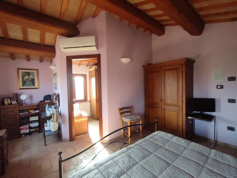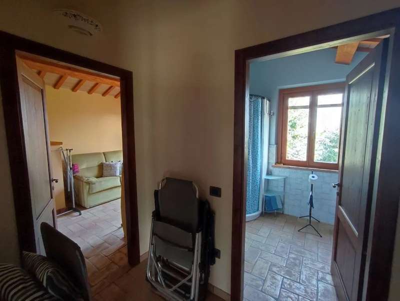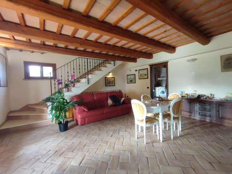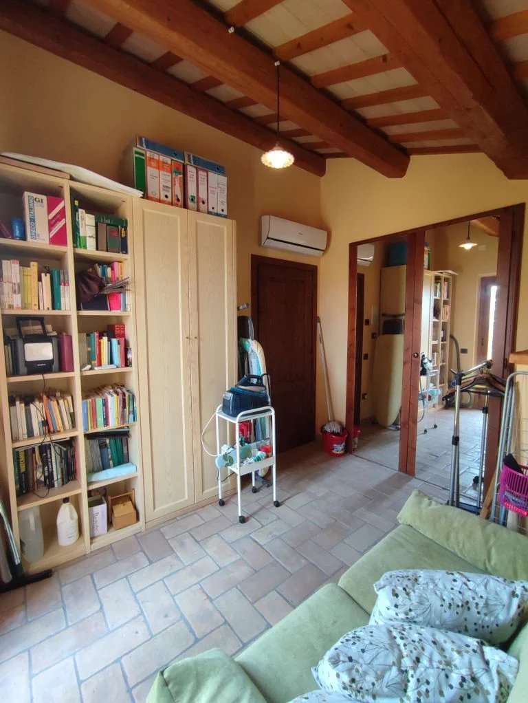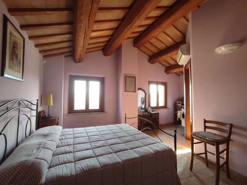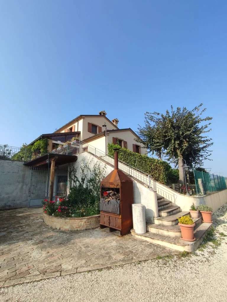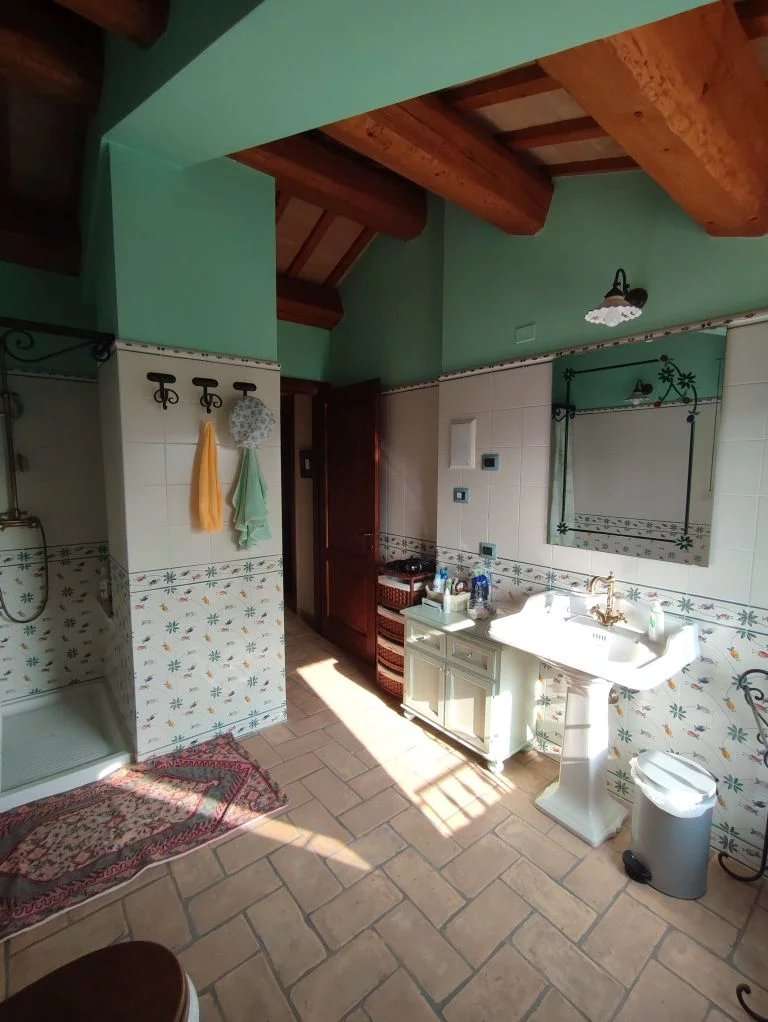 Fano (PU) Carignano. Positioned on a Poggio with private road, we offer for sale a typical Marche farmhouse "demolished and rebuilt": just 15 minutes from the Adriatic Sea, nestled in the heart of the Marche's first hills, easily accessible and well connected to the main roads. The property is accessed from the private road, where there is an automatic gate, parking for 5-6 cars, a garage, a double cellar and a large tavern with thermo-ventilated fireplace, brick kitchen, billiard table, bathroom with hydromassage shower, laundry and technical room. On the ground floor we find the open-space living area with central fireplace, eat-in kitchen with thermo-ventilated fireplace, bathroom and a bedroom. On the first floor we find the sleeping area consisting of master bedroom, bathroom with shower and master bedroom with walk-in closet. The garden is fully fenced, there is a well and you can make your own pool ideal for spending moments of relaxation. Underfloor heating system, two thermo-ventilated fireplaces, air conditioning, central vacuum cleaner, alarm. The best use was made of the land to create a basement and foundations, following the earthquake-resistant regulations. The roof with exposed beams and reinforced concrete structure were thermally insulated and made with first-rate materials. The driveway was also redone with stabilized, breccia and drainage channels to ensure the utmost attention to detail. 780.000€ "APE E" IPE: 148,3 kwh/mqanno