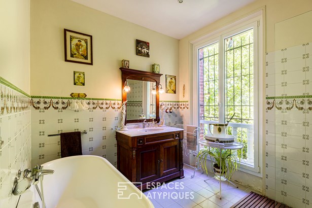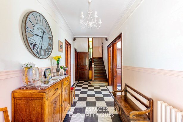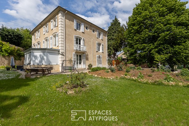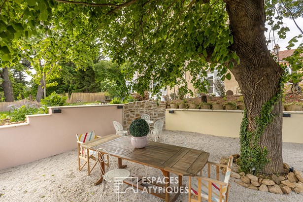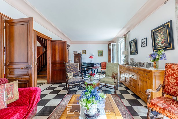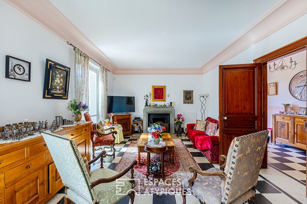 The exterior of this character property is distinguished by its private garden, a veritable green oasis in the heart of the city, offering a privileged space for relaxation and outdoor dining. The presence of a closed garage ensures convenient parking. The immediate urban environment offers easy access to schools and shops, ensuring a practical and pleasant daily life.