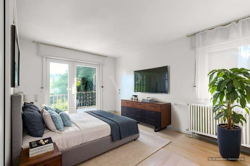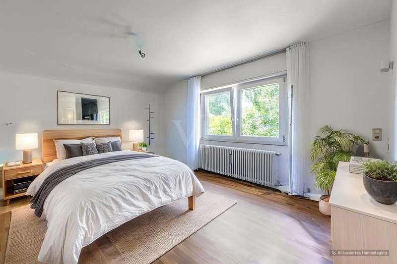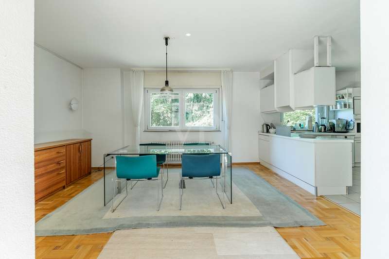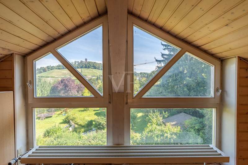 This well-kept detached house, built in 1963 and continuously modernized, is situated in a sought-after location on the Geigersberg and offers an attractive view of the Turmberg. With a living space of approx. 185 m² and a plot area of approx. 642 m², the property is particularly suitable for families looking for a home with plenty of space and a good infrastructure. The house is divided into six rooms, four of which can be used as bedrooms or studies. A spacious living room offers access to the garden and is flooded with light thanks to large windows. The kitchen is functionally designed, tiled to a high standard and allows for sociable cooking and get-togethers. A daylight bathroom provides comfort in everyday life. The furnishings are of a good standard and have been regularly maintained and partially renewed. There are high-quality floor coverings on both the first floor and the upper floor: new maple parquet flooring was laid on the upper floor in 2020, while the tiles in the bathrooms, kitchen and basement were recently renewed (2024). The windows were replaced between 2017 and 2020 and now mostly have triple glazing, some plastic, some wood. Additional protection is provided by burglar-resistant glazing on the first floor. On the upper floor, the shutters in room 2 and room 4 are electrically operated (2020), while manual shutters are available on the first floor. A balcony on the upper floor invites you to linger with a view of the Turmberg. The modernizations are particularly noteworthy: A new central heating system was installed in 2020, while at the same time the roof was extensively insulated and photovoltaic panels were installed on the south side, helping to improve energy efficiency. The pipe system was modernized back in 1985. In the basement there is a granny apartment with a shower room, which can also be used as an office. A garage offers ample parking space for your vehicle. The property is accessed from the street via a long staircase and the single garage is located on the street and is built into the slope. The attractive plot is well laid out and offers a wide range of leisure activities. Viewings are possible by appointment - we look forward to hearing from you.