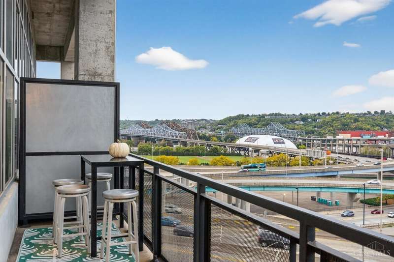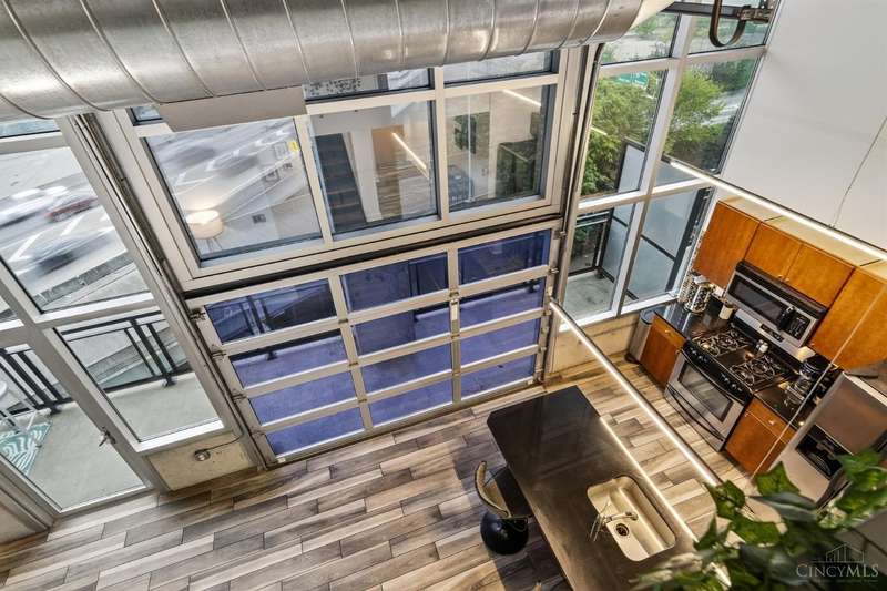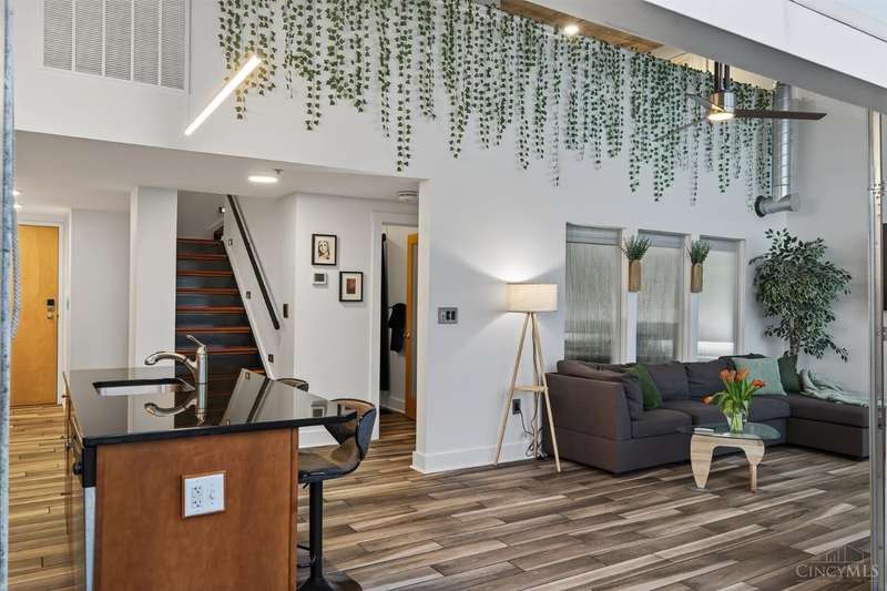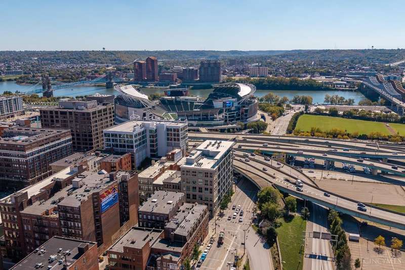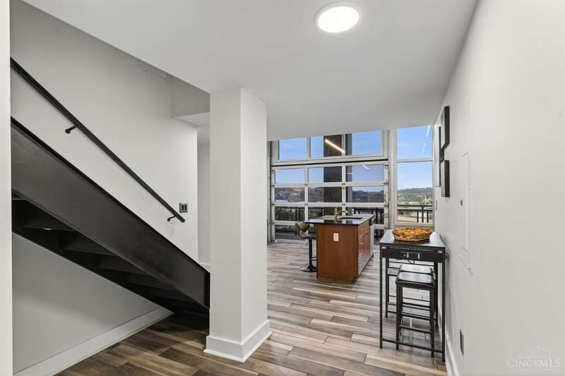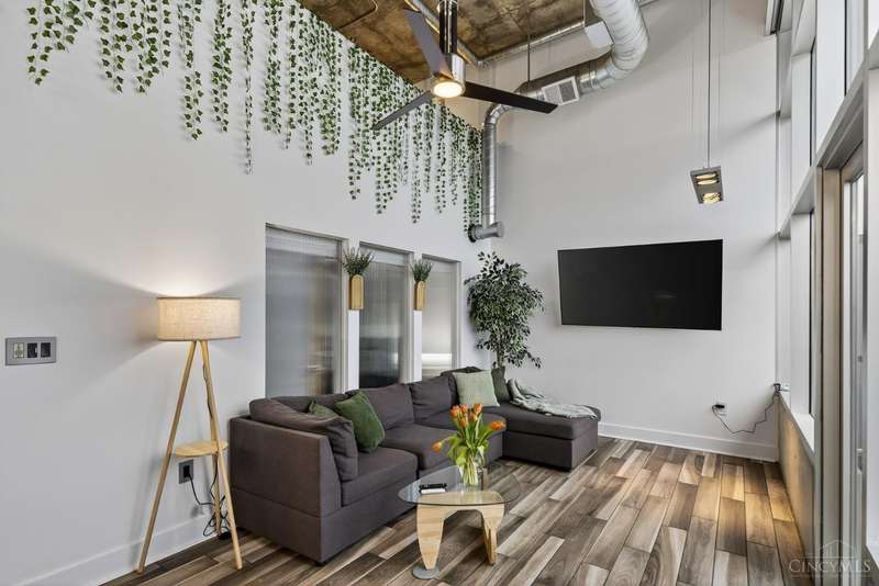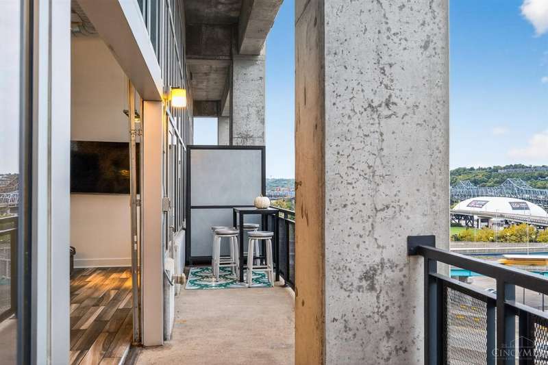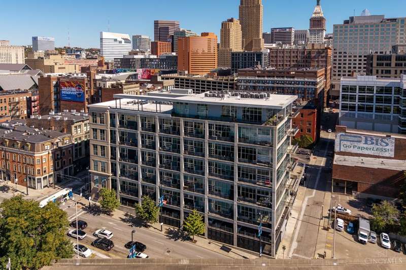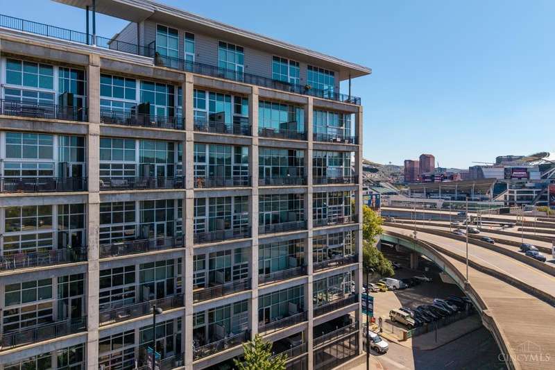 Ultra-modern form and function, perfectly united. Futuristic wall of glass to let the sunshine and views in, including the Bengals practice field. Walk out to sprawling, private terrace. Tinted glass & electronically operated shades. Primary loft bedroom with new bathroom and adjacent Cedar closet/laundry area. Built in desk in 2nd bedroom/study. Elfa guest closet, ribbed glass doors, and new guest bathroom. Porcelin tile floor on the first floor. 3/4 Brazilian cherry floor on stairs & second floor. Sleek lighting. MinkaAire ceiling fan. Keep your car flawless year round and free of snow and ice this winter with assigned in building garage parking. Garage accessed by the elevator. Central location, Walk to Reds, Bengals, & FCC games, riverfront, Smale park, shopping, gyms, bars, restaurants, including the new Salazar