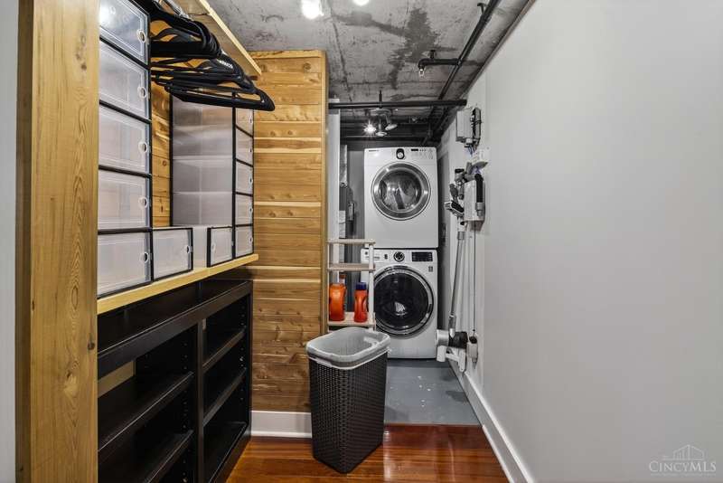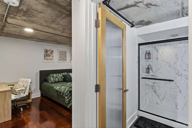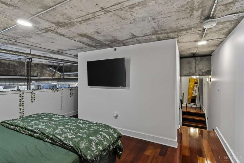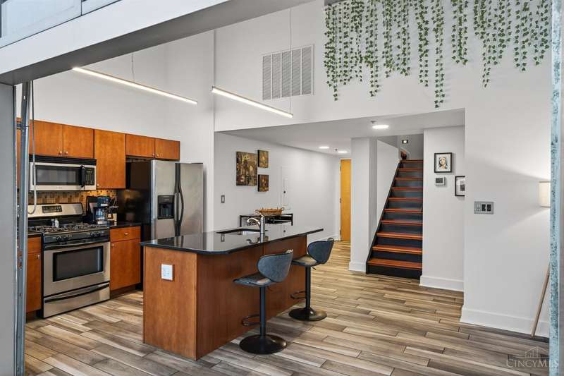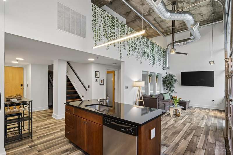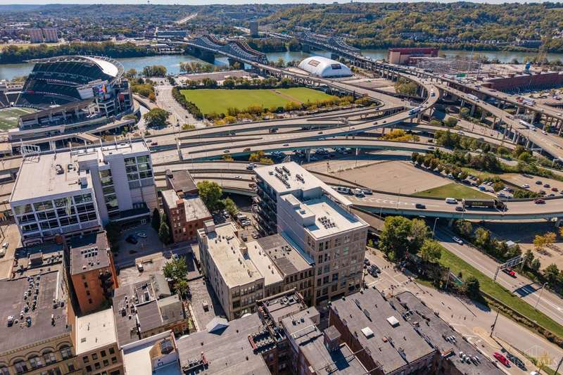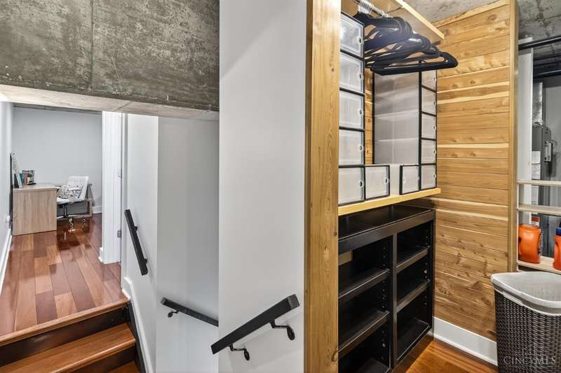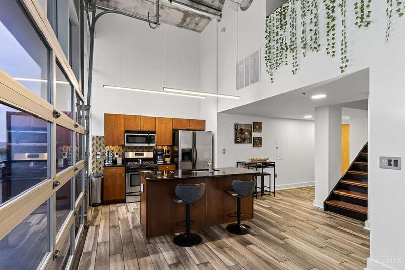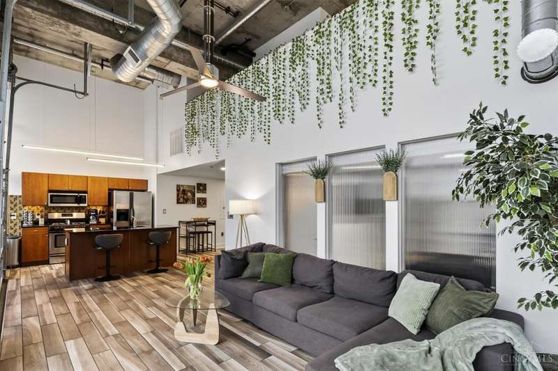 Ultra-modern form and function, perfectly united. Futuristic wall of glass to let the sunshine and views in, including the Bengals practice field. Walk out to sprawling, private terrace. Tinted glass & electronically operated shades. Primary loft bedroom with new bathroom and adjacent Cedar closet/laundry area. Built in desk in 2nd bedroom/study. Elfa guest closet, ribbed glass doors, and new guest bathroom. Porcelin tile floor on the first floor. 3/4 Brazilian cherry floor on stairs & second floor. Sleek lighting. MinkaAire ceiling fan. Keep your car flawless year round and free of snow and ice this winter with assigned in building garage parking. Garage accessed by the elevator. Central location, Walk to Reds, Bengals, & FCC games, riverfront, Smale park, shopping, gyms, bars, restaurants, including the new Salazar