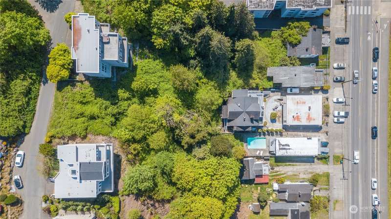 Private neighborhood of $Million+ homes. Unobstructed view of Puget Sound, Olympic Mtns, the 'West Seattle Riviera', boat traffic and swoon-inducing sunsets! Great location for recreation, shopping, dining, entertainment and 2-stop-light access to W S Freeway. One of the few lots left in West Seattle with a view this great! 6600 sf per kcr, lot slopes to NW, street on SE, houses on either side, all utilities (incl gas) in street. Opinion letter from City of Seattle, Geotech report, plans available. Buyer to verify all to their satsifaction. Build your dream!