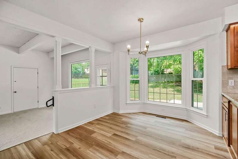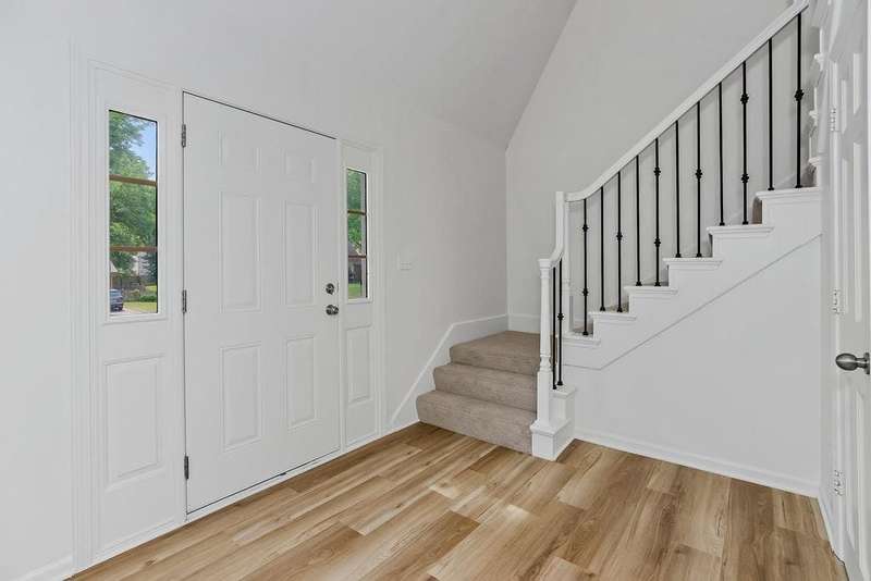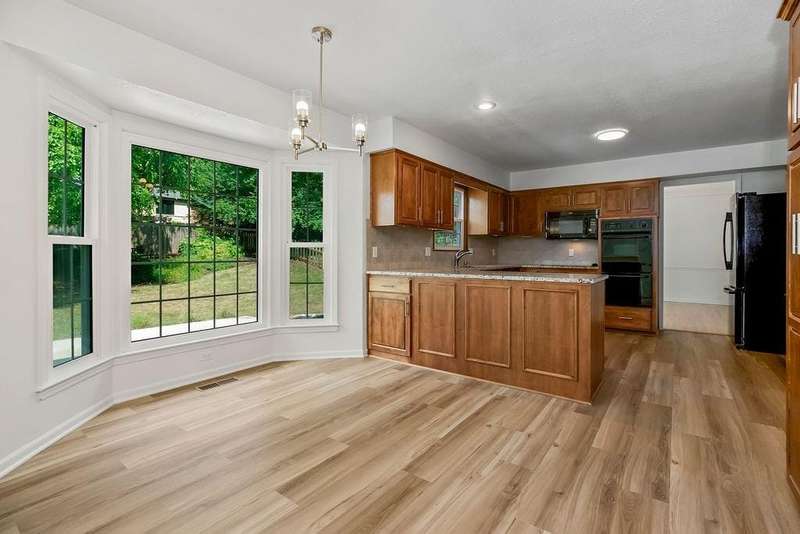 This beautifully updated home has been thoughtfully renovated from top to bottom, offering stylish finishes, modern upgrades, and turnkey convenience throughout. Fresh paint, updated lighting, and new fixtures enhance every room, creating a bright and welcoming atmosphere. The spacious living room now features newly installed LED recessed lighting. The main level showcases refinished wood floors in the living and dining areas, paired with brand-new luxury vinyl plank flooring in the entryway, half bathroom, kitchen, breakfast area, & basement. The kitchen is both functional and inviting, offering rich wood cabinetry, granite countertops, new hardware, pantry, and a built-in planning desk. All appliances stay, including a Whirlpool refrigerator, Maytag built-in double oven, microwave, & a four-burner electric cooktop. Upstairs, every bedroom feature walk-in closets and new designer carpet. Remote-controlled ceiling fan/light combos have been added to each room for comfort and convenience. The primary suite offers a completely updated bathroom with a new double-sink vanity topped in quartz, modern mirrors, and sleek bar lighting as well as walk-in shower. The 2nd bathroom offers new quartz countertop, updated light fixture &tile. Don't miss the remodeled 2nd floor laundry room. The basement has been finished with an open layout. It features new LVP flooring, lighting, and carpeted stairs. Both the interior main water shut-off and the exterior water meter have been recently replaced for peace of mind. Outside, enjoy a large, beautifully landscaped backyard complete with a spacious patio, water feature, mature trees, 2 new side fencing and a charming pergola with built-in bench seatingperfect for relaxing or entertaining. The front of the home has also been enhanced with freshly painted brick accents, a newly painted garage door, and fresh mulch. This home is the perfect blend of thoughtful updatesready for you to move right in and enjoy. * Shutters coming soon!
