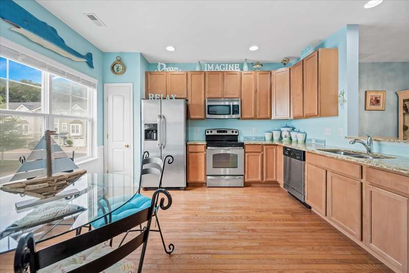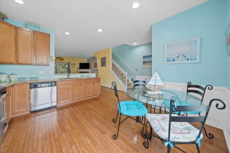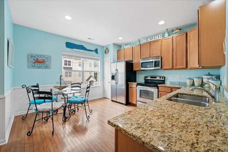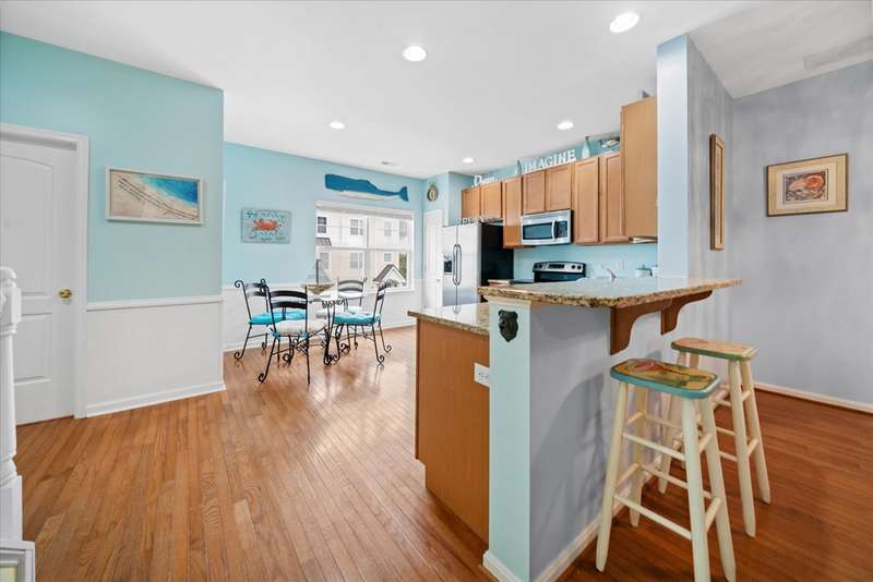Welcome to your Coastal Dream home! This stunning three-story beach townhome is located in the desirable Rehoboth Crossing community, situated east of Route 1 and just a few minutes from surrounding attractions that include beautiful beaches, restaurants, outlets, boardwalk entertainment and downtown Rehoboth Beach. Beginning at the entry level you will be delighted with the bright foyer with tile flooring and wainscoting leading to a spacious bedroom suite with a full bath and private access to a covered patio, perfect for guests or use as a home office. Direct access to the one-car garage plus three hall closets on this level offers plentiful storage for all your beach gear. The second floor, thoughtfully designed for entertaining, boasts an open and airy floor plan with hardwood flooring, a great room with a gas fireplace and sliding doors to a lovely screened porch, an eat-in kitchen with stainless steel appliances, granite countertops, a breakfast bar, recessed lighting, wainscoting and a pantry. The adjacent dining area offers a space for entertaining larger groups and the powder room with wainscoting is conveniently located just off the kitchen. On the third level you’ll find two bedroom suites plus a laundry closet. The primary bedroom suite with a vaulted ceiling, a full bath with tile flooring and a tile shower, a walk-in closet and a private balcony, offers a serene retreat. The guest bedroom suite is complete with a vaulted ceiling, two closets and a full tile bath. Rehoboth Crossing is more than a neighborhood – it is a lifestyle! Enjoy access to the community clubhouse, fitness center, outdoor pool and direct neighborhood access to the Junction Breakwater Trail, a scenic trail leading to both Lewes and Rehoboth. This location is truly at the heart of it all…and a nearby beach shuttle offers a convenient way to get around. Location, location, location has never been more true! Make your appointment today!