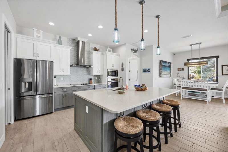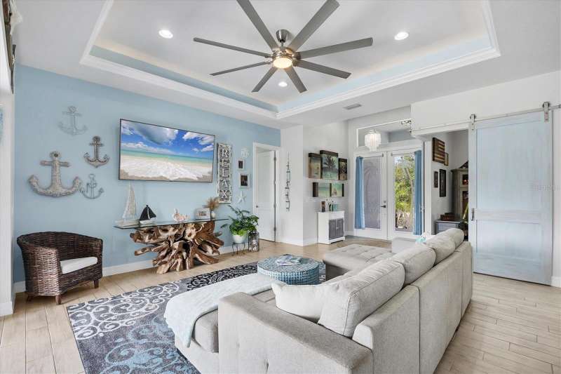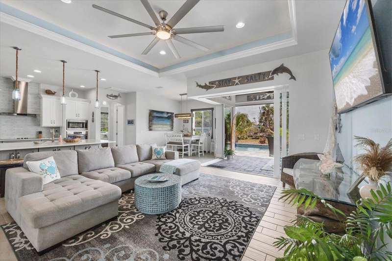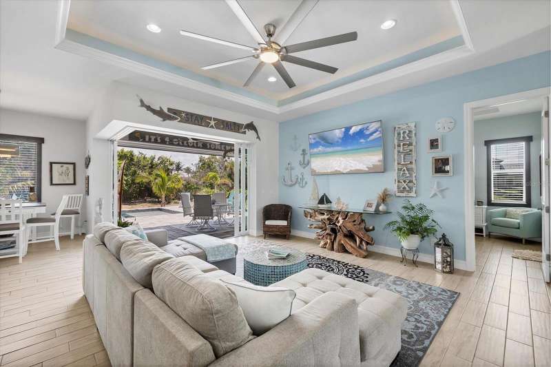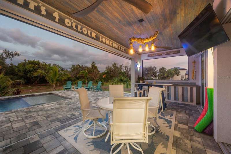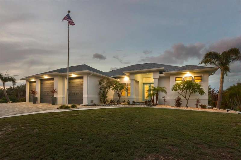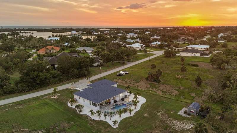 Built in 2019 this stunning 3 bed, plus den/study, 2 bath home sits on over half an acre of land, with a gorgeous heated pool and lanai and a car lover's dream 3 car garage. Located in the historic Vanderbilt developed neighborhood of Cape Haze with banyan lined streets, sidewalks to stroll to shopping and dining. Like all the homes in the neighborhood the house sits nicely back from the street, with a wide paver driveway and walkway up to the front door. Tall ceilings, large open kitchen and great room, custom wood cabinetry, stone counter tops, designer tile backsplash, high end appliances, plank tile flooring throughout, 8-foot zero corner sliding glass doors to the lanai, a full roll down screen and an outdoor kitchen on the lanai. Expansive paver lanai, beautifully designed pool with a sun shelf and in-pool seating. An incredible jumbo size 3 car garage with oversized stall doors, with two doors that are 9' wide by 10' tall and one 10'x10' middle door. Extra deep and tall ceilings, perfect for car lifts, storing boats, a workshop, and tremendous storage space. The home also comes with a very handy 10'x16' shed, perfect for even more storage. Cape Haze is a special waterfront community with membership in the Cape Haze POA there is usage of a dock and private beach on Don Pedro Island. A phenomenal location, Cape Haze is close to three full service marinas, numerous public and private golf courses, historic Boca Grande, miles of pristine sandy beaches and world-class fishing and boating.