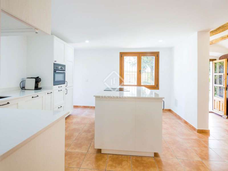 This magnificent, traditionally styled and carefully restored Catalan country house is located in the quiet neighbourhood of Sant Daniel, between Calonge and Sant Antoni de Calonge. The country house, originally built in the late 19th century, has been completely renovated to a high level of detail, with a design that combines classic architecture with modern touches. The property, distributed over two floors and situated on a large south-facing plot, offers the possibility of adding a private swimming pool if desired. The ground floor has an entrance hall, a large kitchen with dining room, a living room, a full bathroom with utility room and an additional space that can function as a living room, study or library. On the upper floor , there are three double bedrooms, one of them with a private bathroom, and a second full bathroom , as well as a main bedroom with a private bathroom and its own access . In addition, there is an additional guest bedroom with a separate bathroom , ideal for hosting visitors in complete privacy. The property includes a large covered garage and ample additional parking space, plus a covered porch, a private terrace and a storage room. It is perfect for those looking for a family-friendly home in an exceptional location that combines tranquillity and charm. Please contact us for more information.